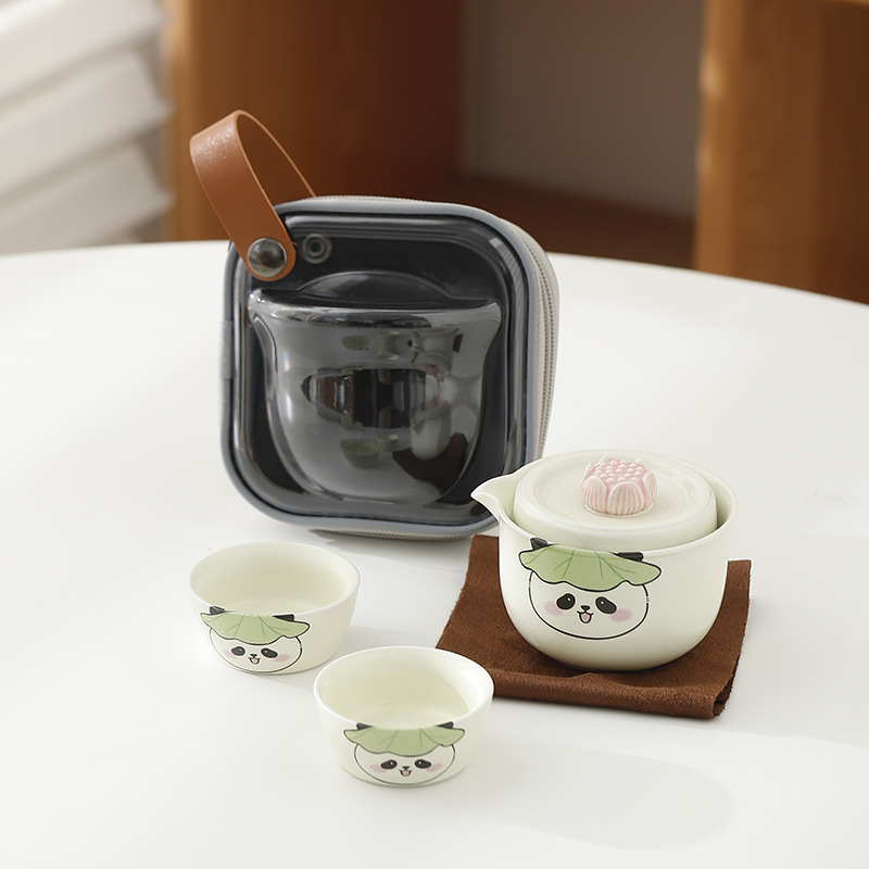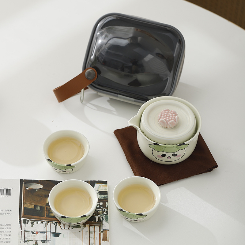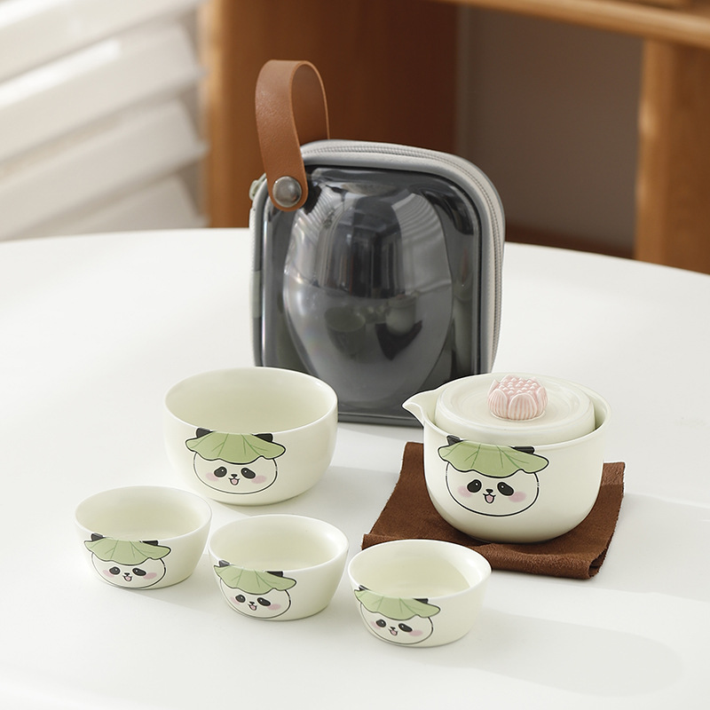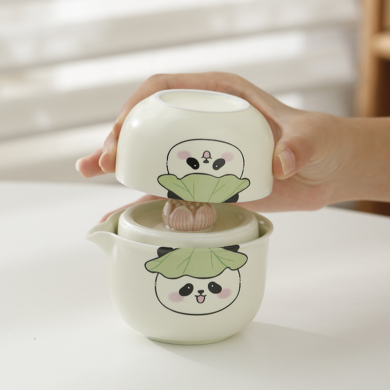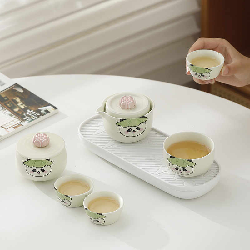 Cartoon Panda Kuaike Cup Modern simple style portable travel tea set Ceramic tea maker Kung Fu tea set