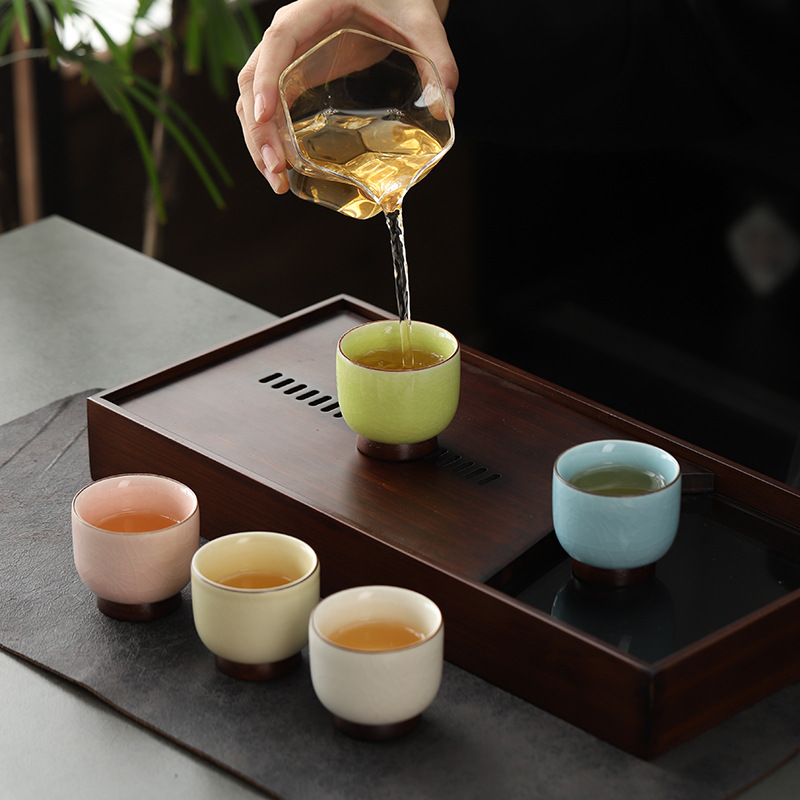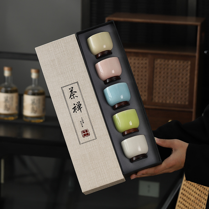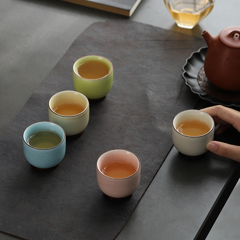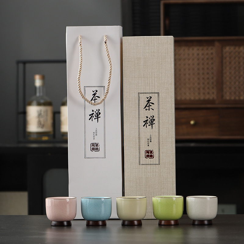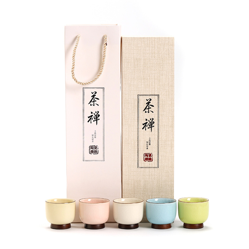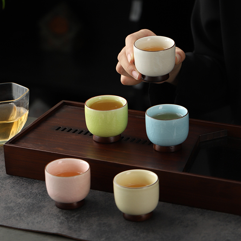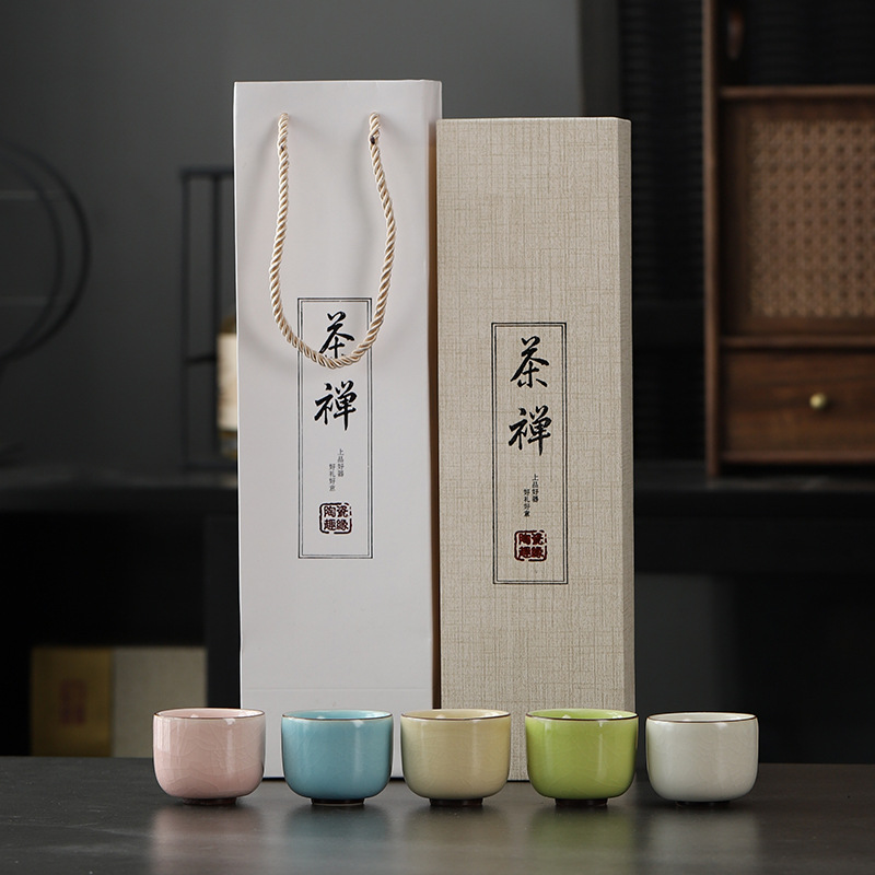 High-end Ru kiln master cup, ceramic guest cup, open-piece, ice crack, tea tasting, five-color cup, business gift, accompanying gift