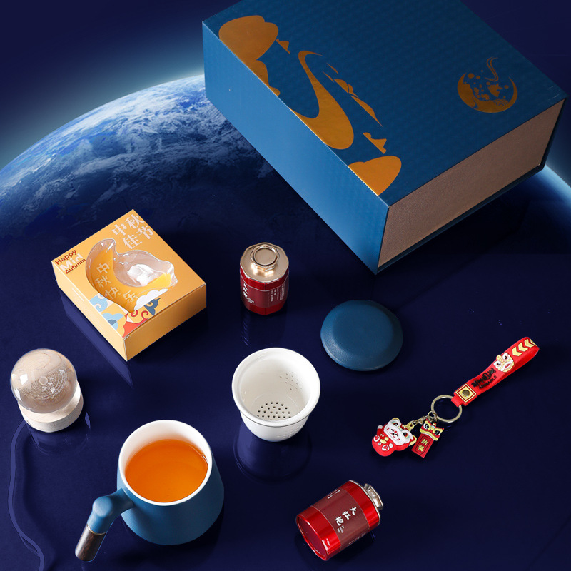 Mid-Autumn Festival, beautiful flowers and full moon, office cup set, company business activities, festivals, customer gifts, commemorative gifts, accompanying gifts LOGO