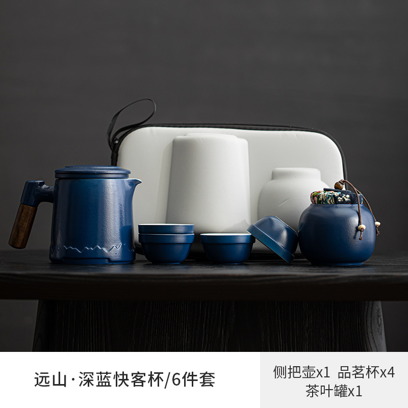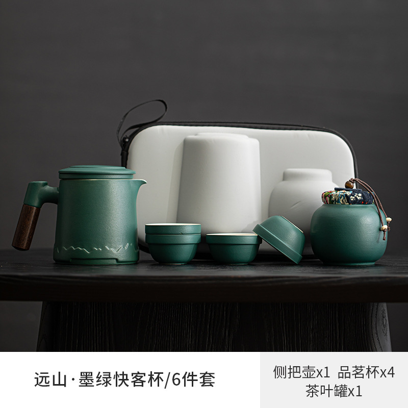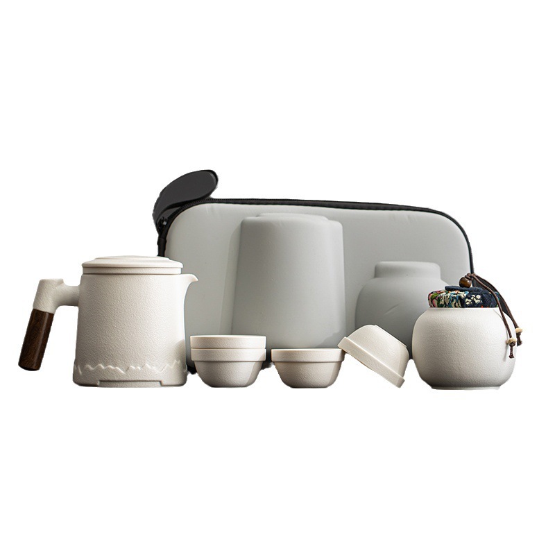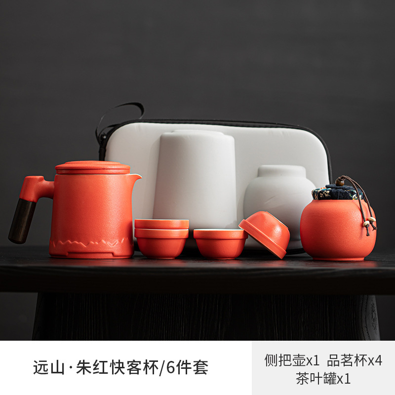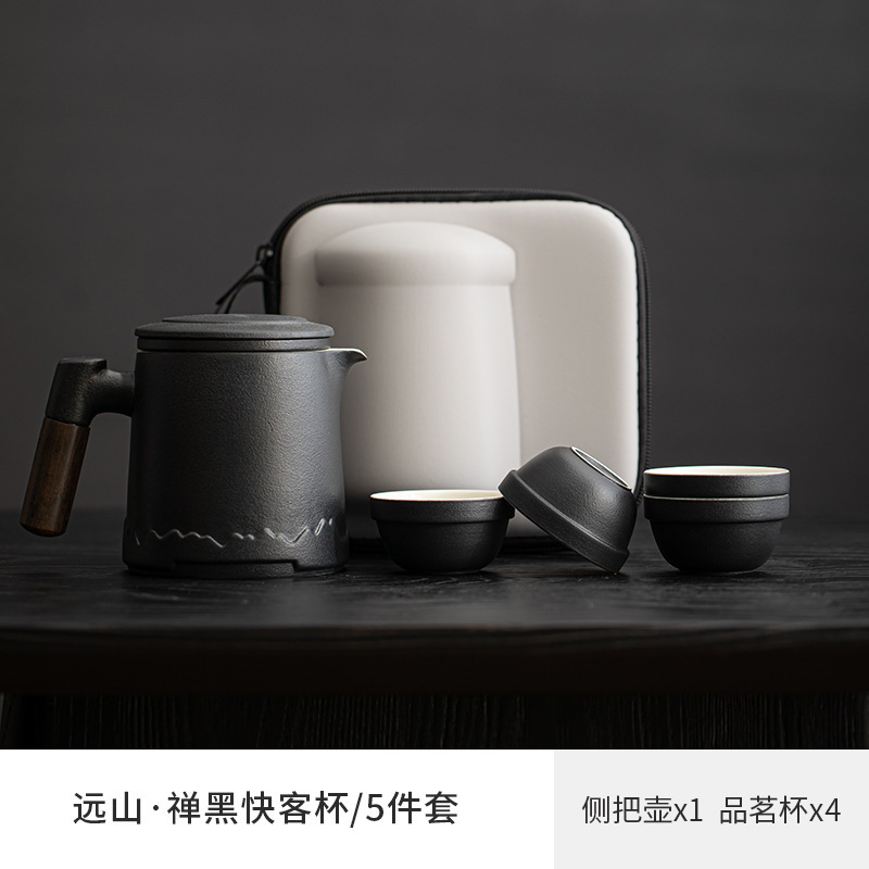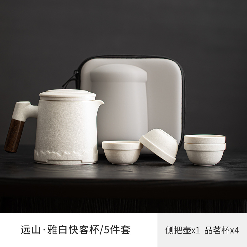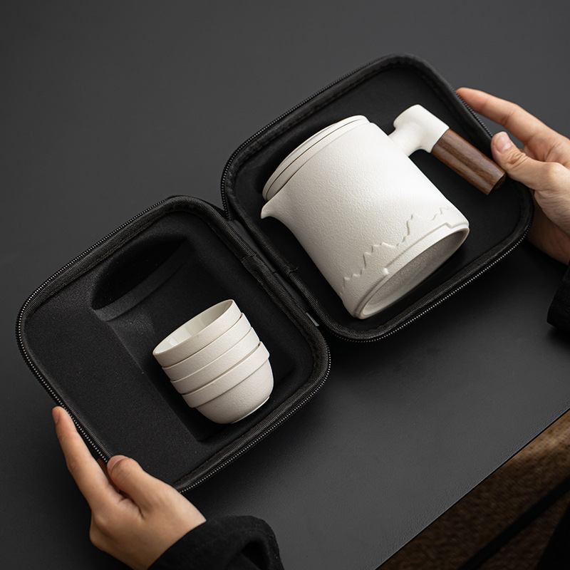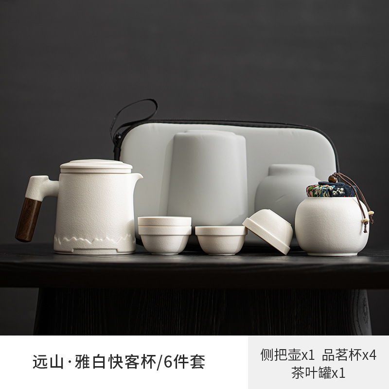 Travel tea set Outdoor portable ceramic Kuaike cup One pot of four cups tea making bag with hand gift