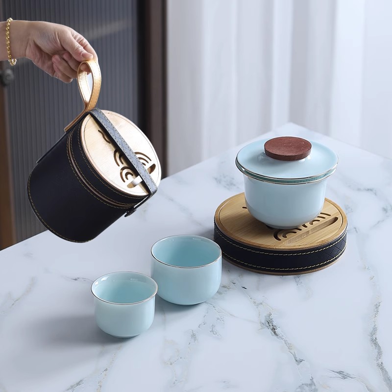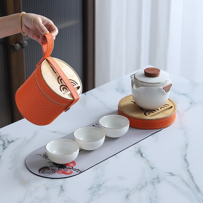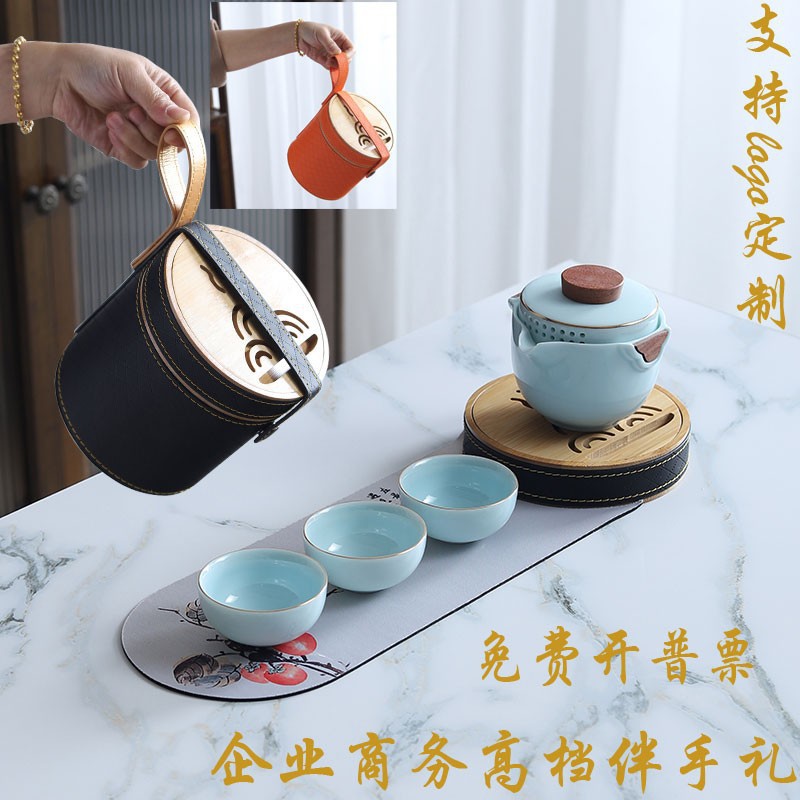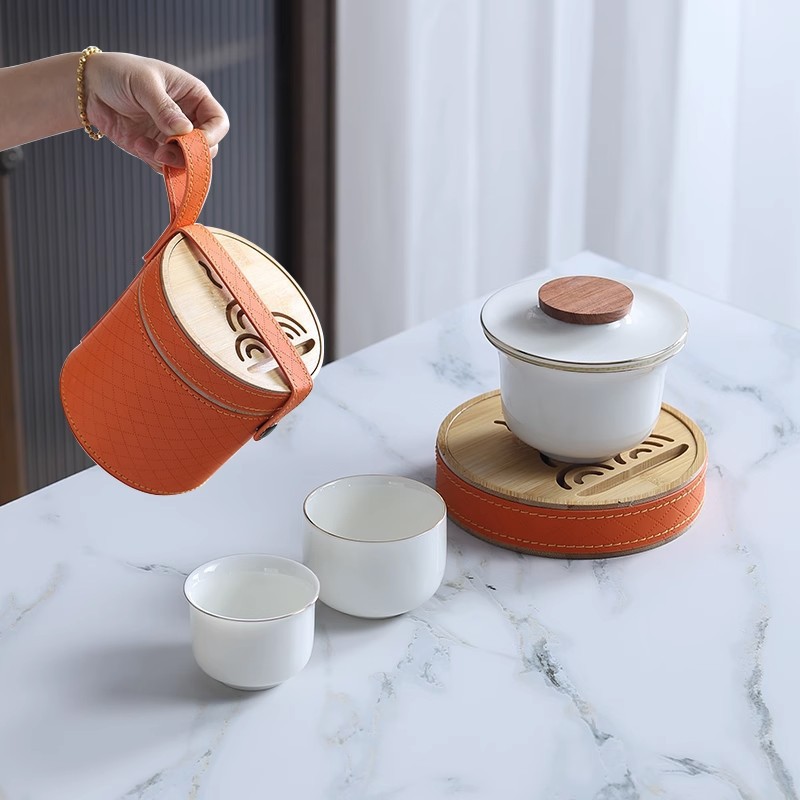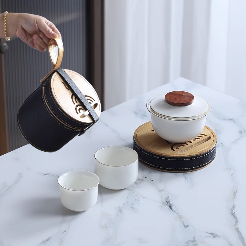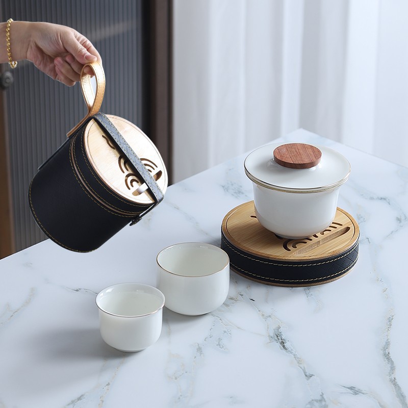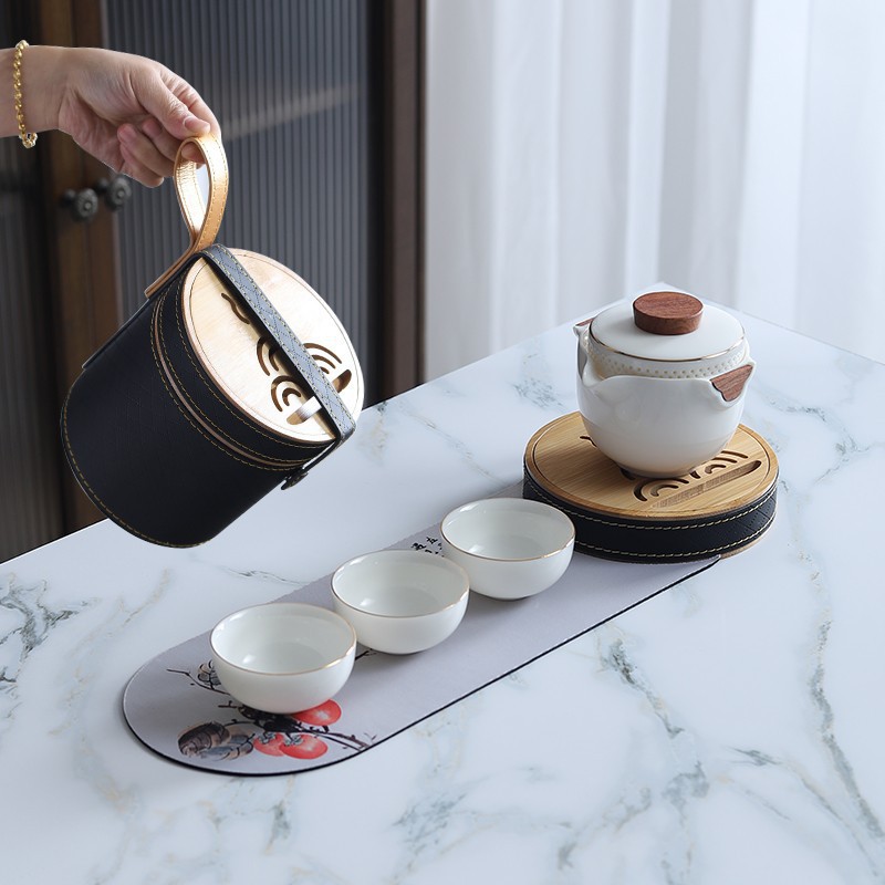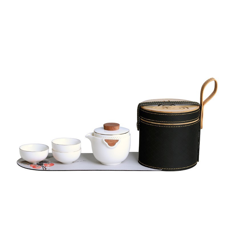 Sheep fat jade white porcelain express guest cup pot portable travel tea set outdoor Japanese simple accompanying gift logo
