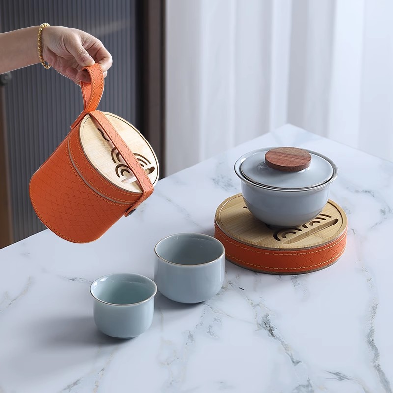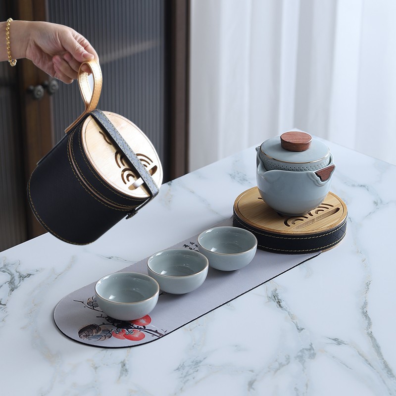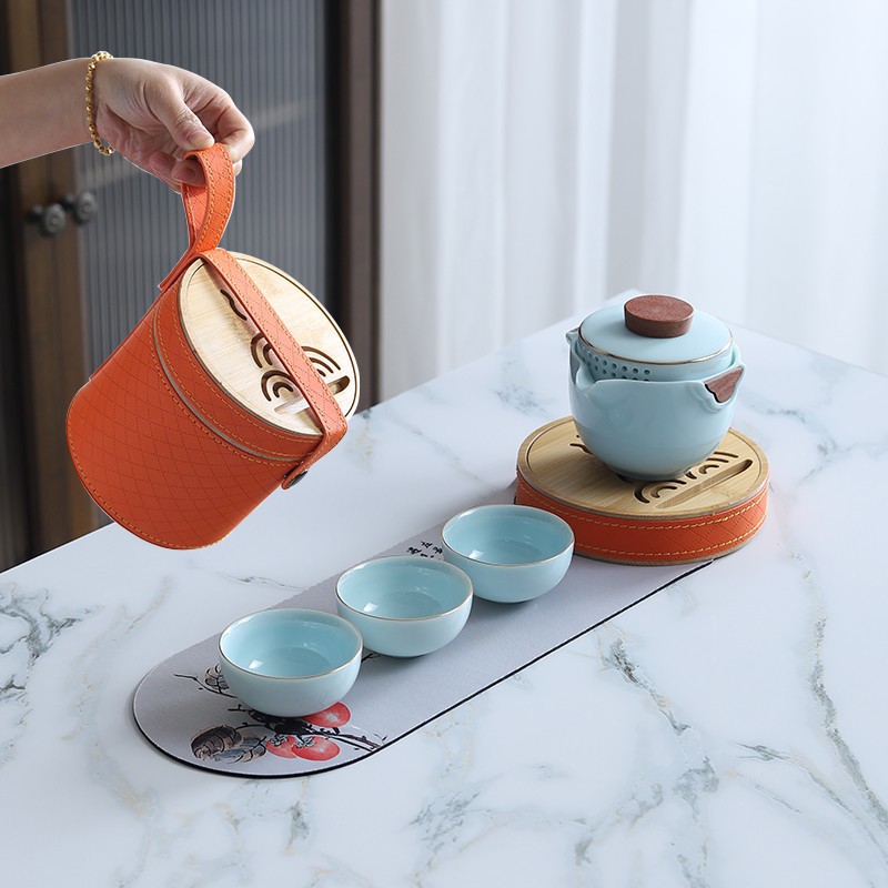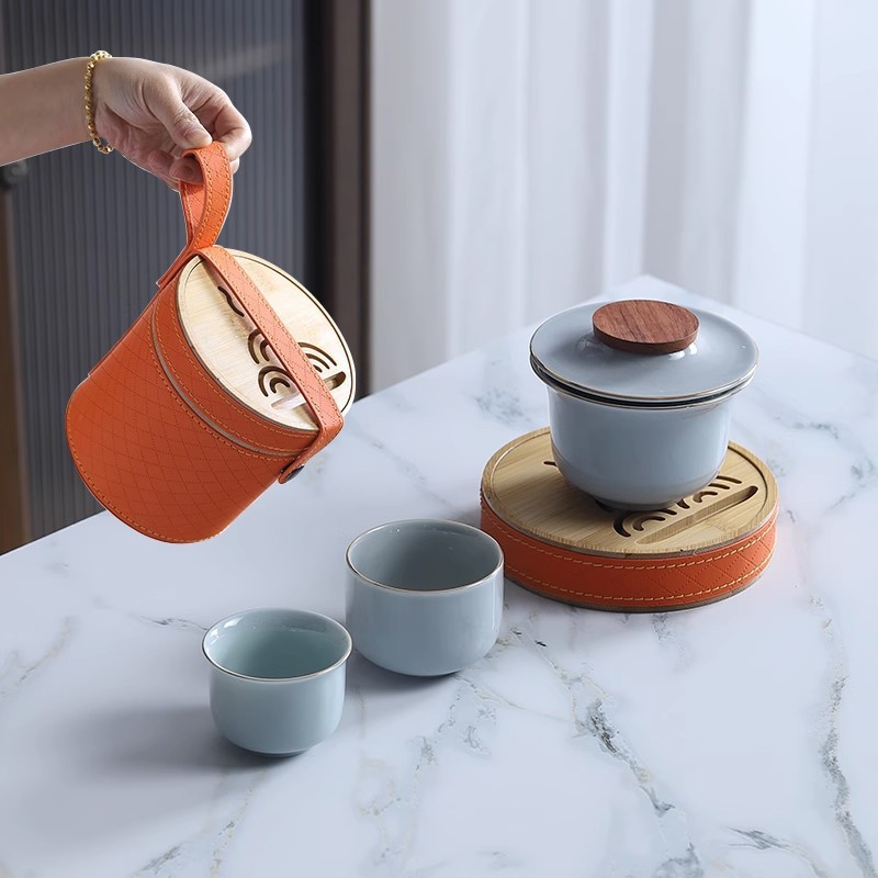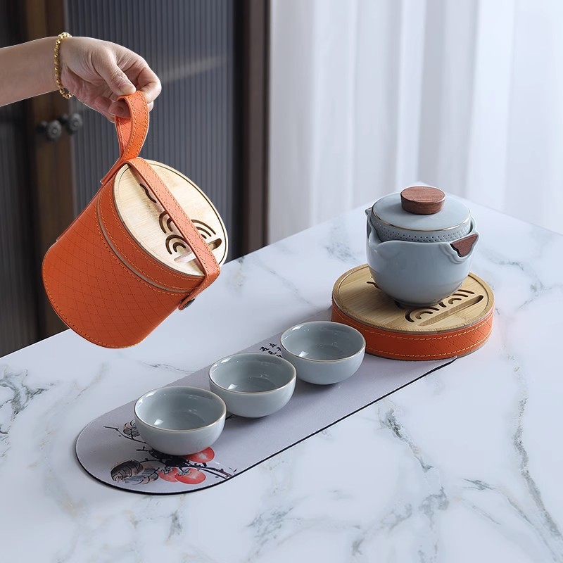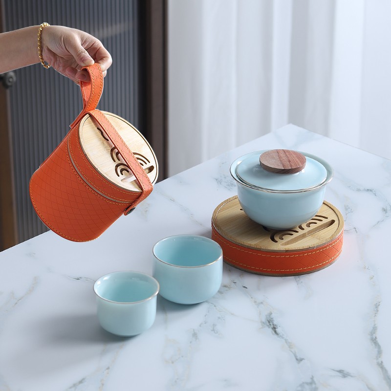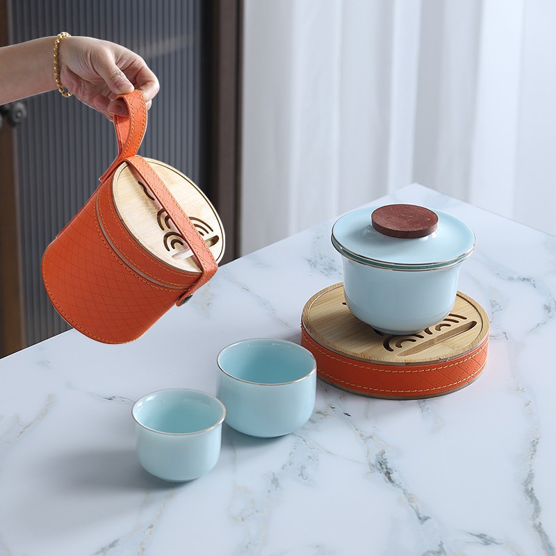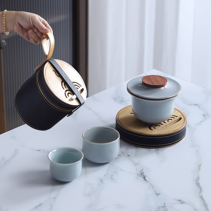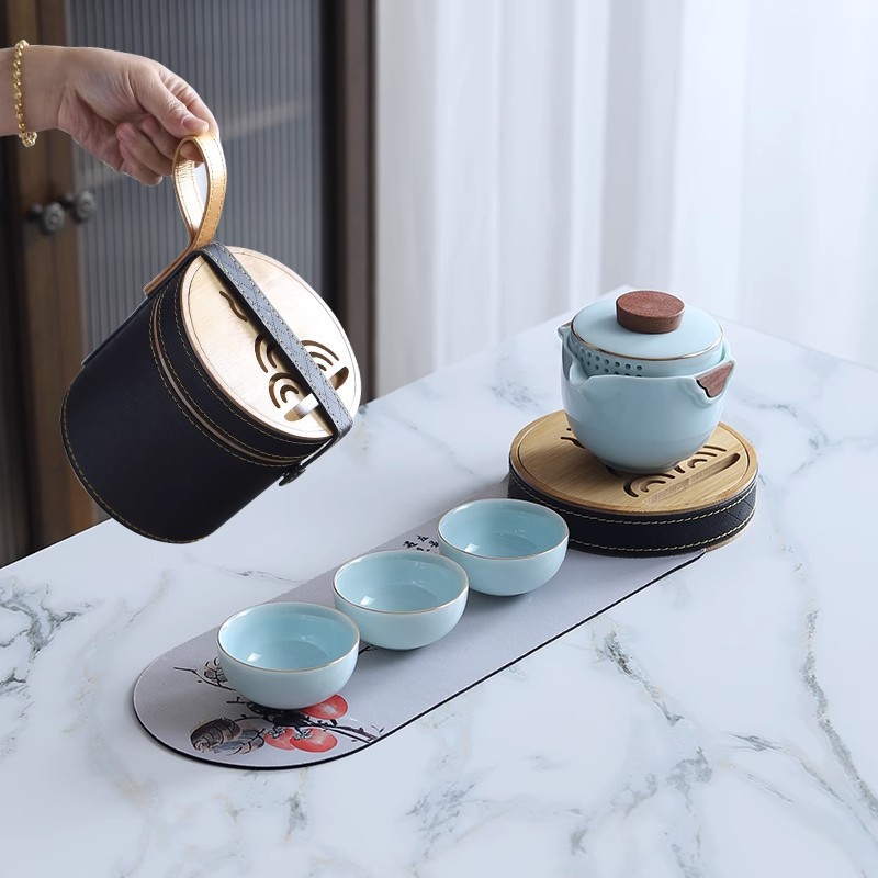 Sheep fat jade white porcelain express guest cup pot portable travel tea set outdoor Japanese simple accompanying gift logo
