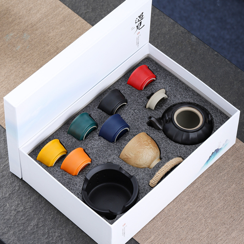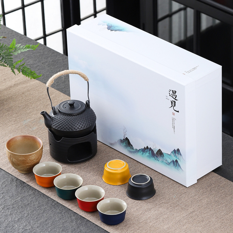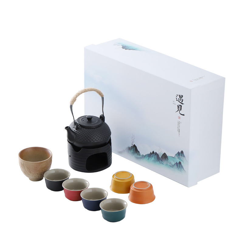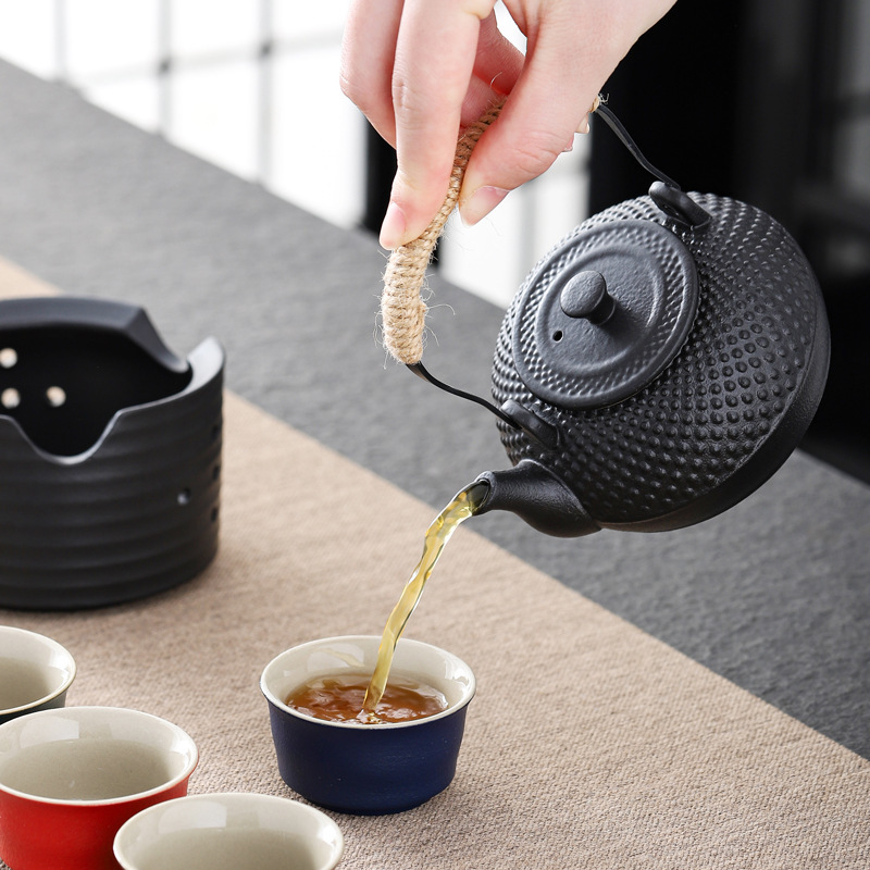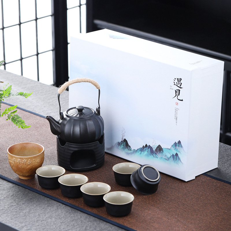 Japanese-style coarse pottery carrying beam pot warm tea wine warmer tea pot outdoor travel tea set with hand gift LOGO