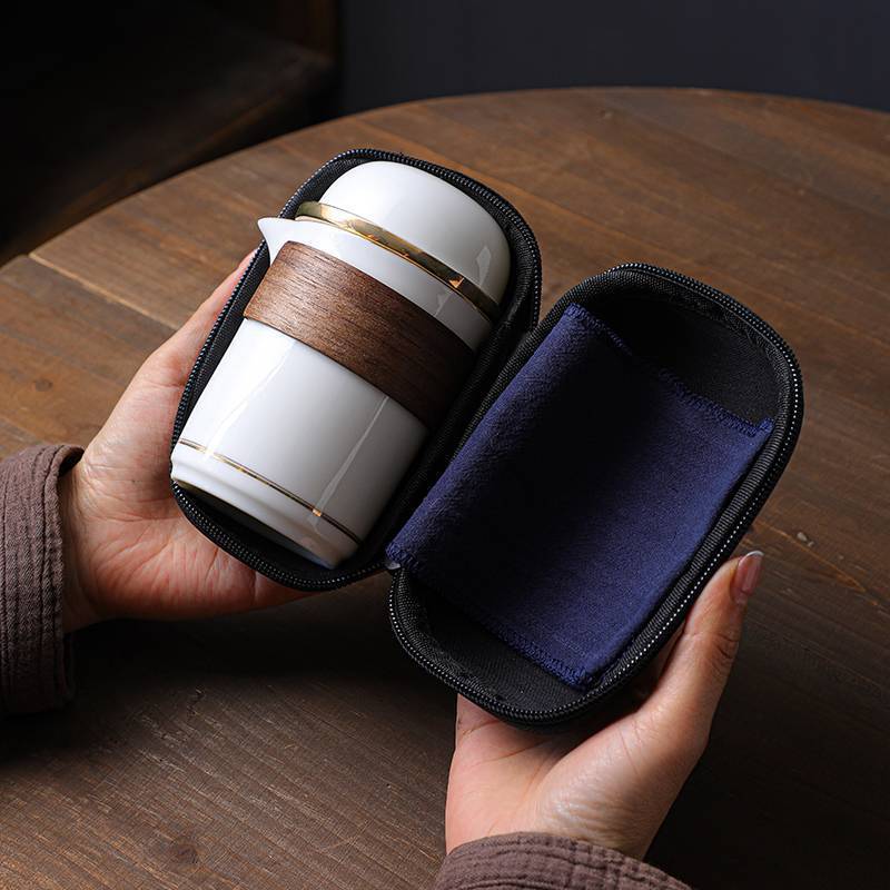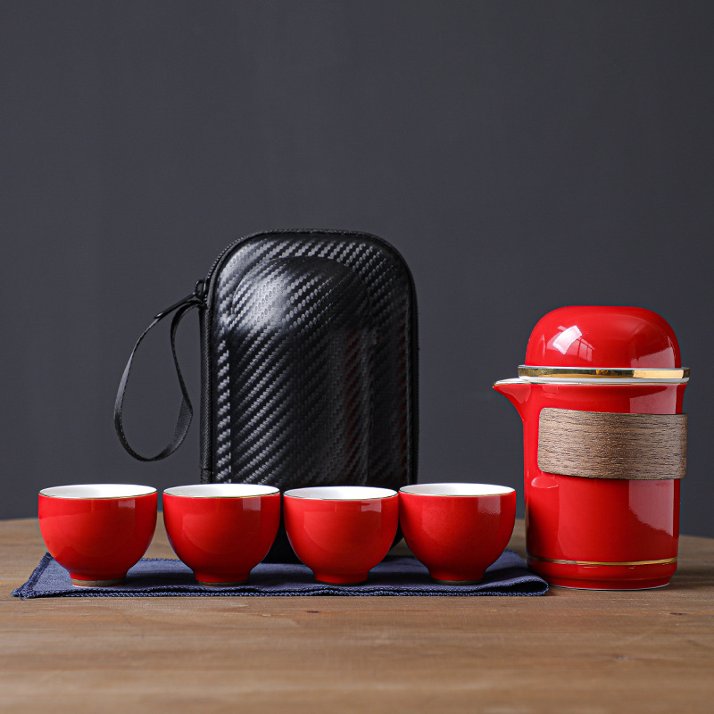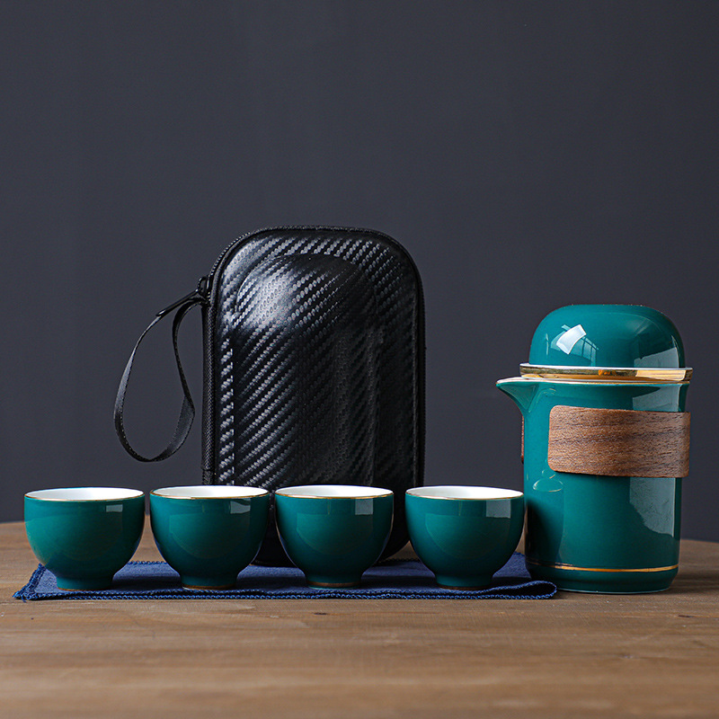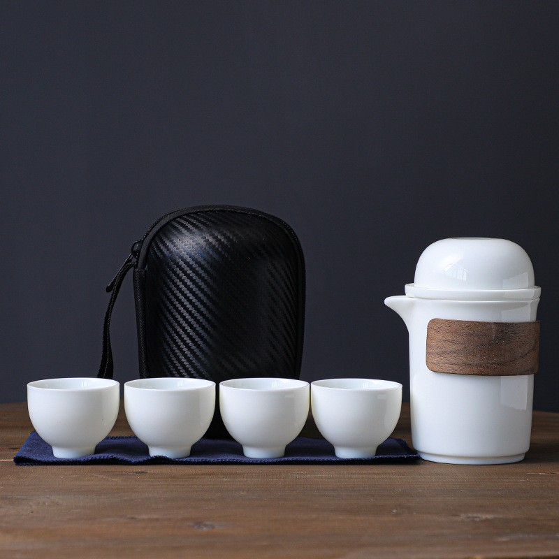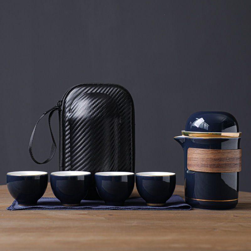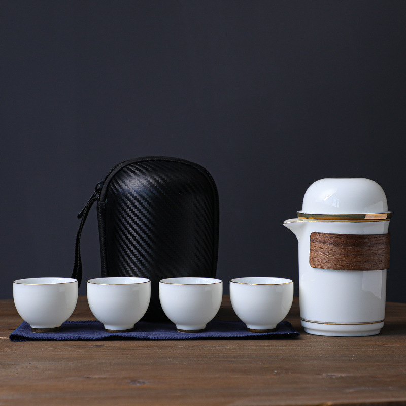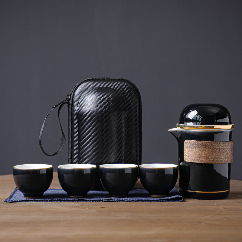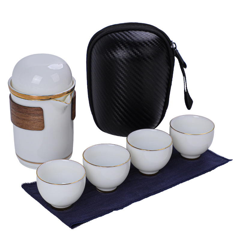 Outdoor travel tea set portable storage bag business event gift ceramic express guest cup one pot of five cups