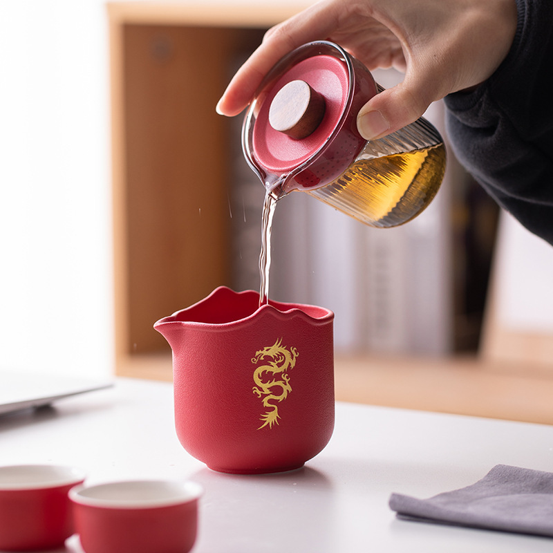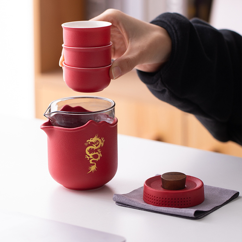 China Red Dragon Year festive travel tea set outdoor convenient Kuaike Cup business event gift accompanying gift
