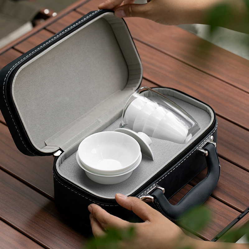 Wholesale activities Travel tea set Convenient Kuaike cups Kung Fu white porcelain teapot tea set Outdoor gift LOGO