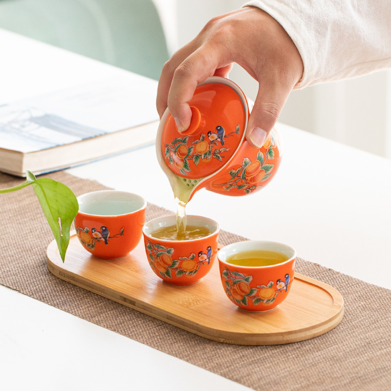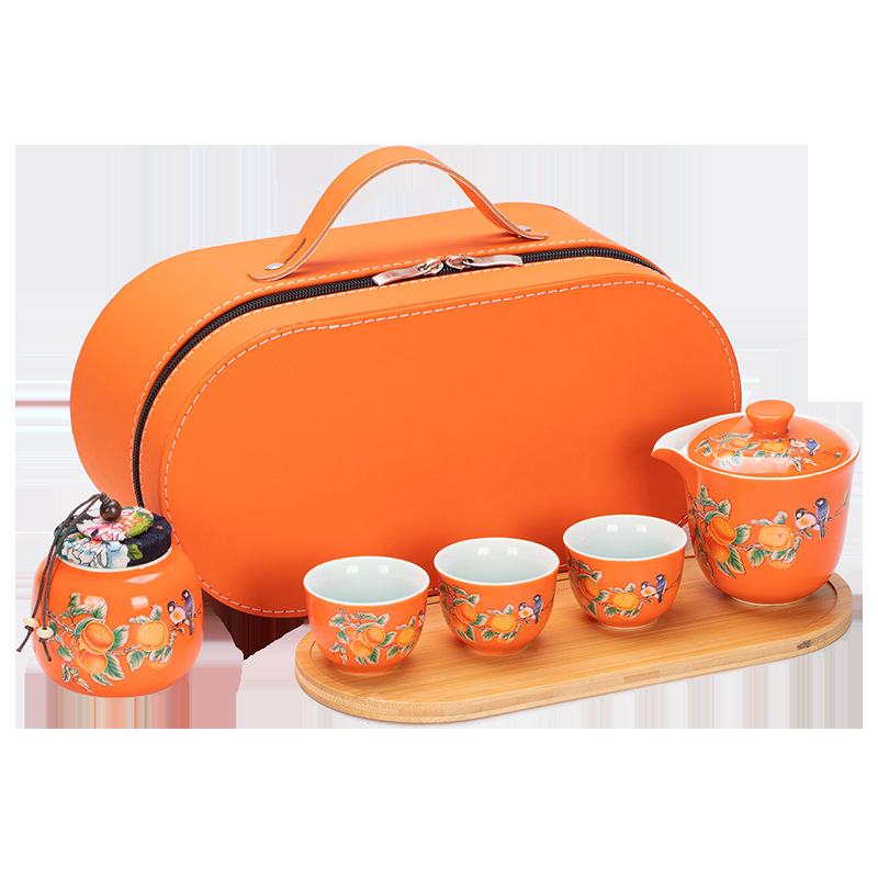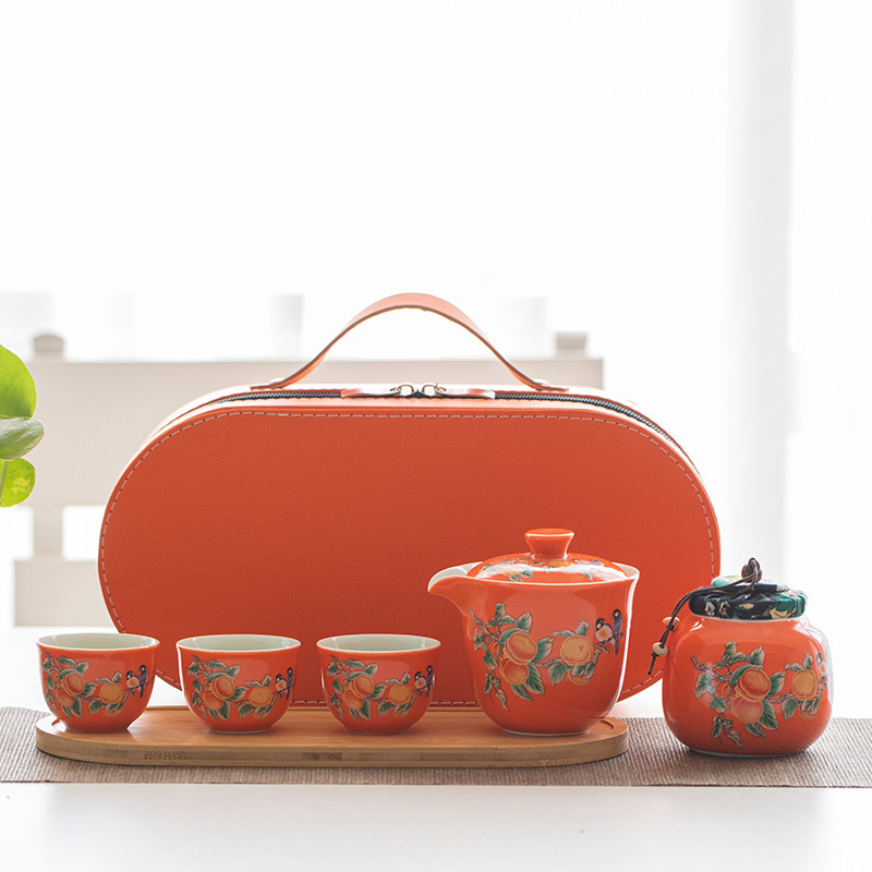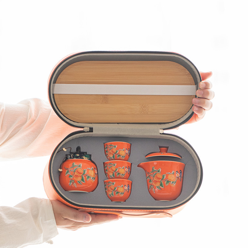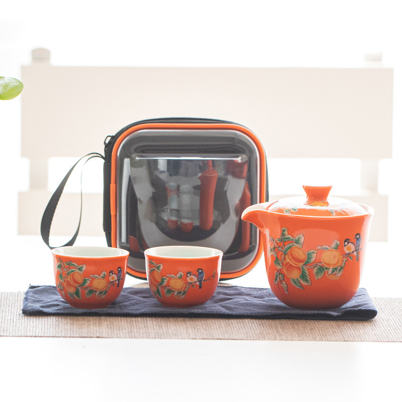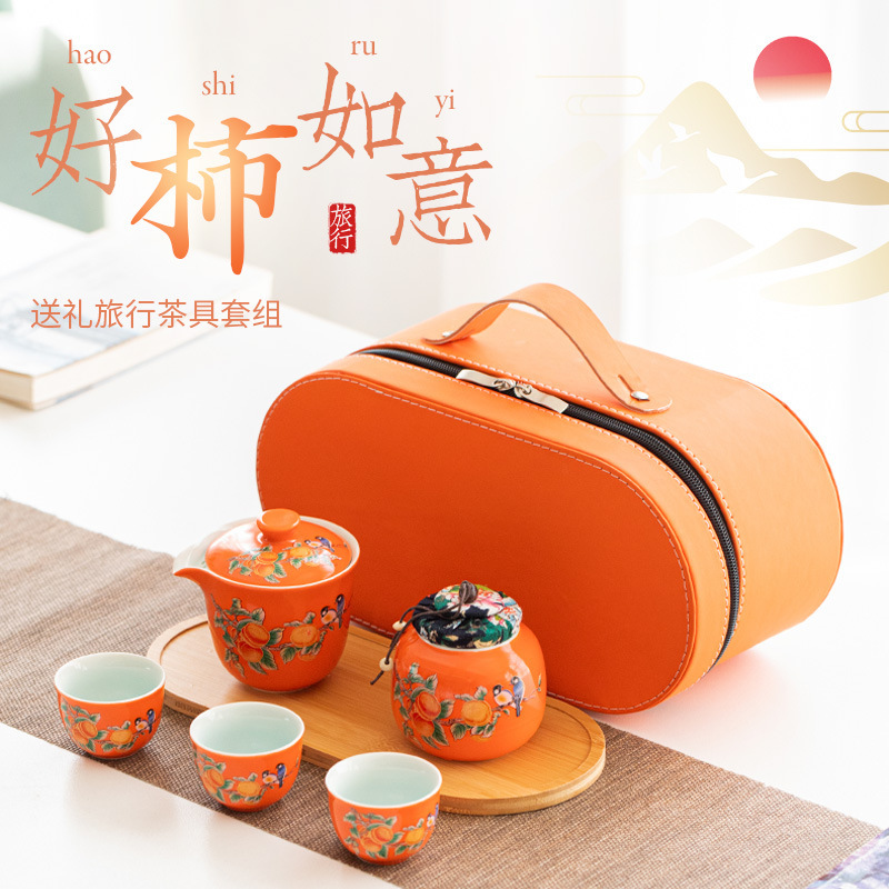 Ceramic travel tea set Convenient Kuaike Cup Creative Persimmon Ruyi Tea Set Outdoor gift event LOGO