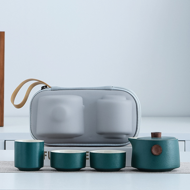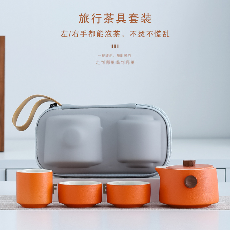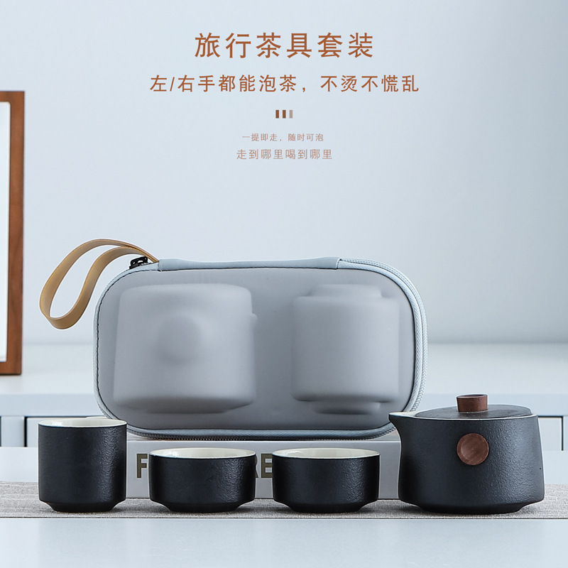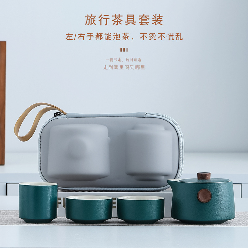 Ceramic Kuaike Cup Travel Tea Set Small Set Household Simple Outdoor Portable One Pot of Three Cups