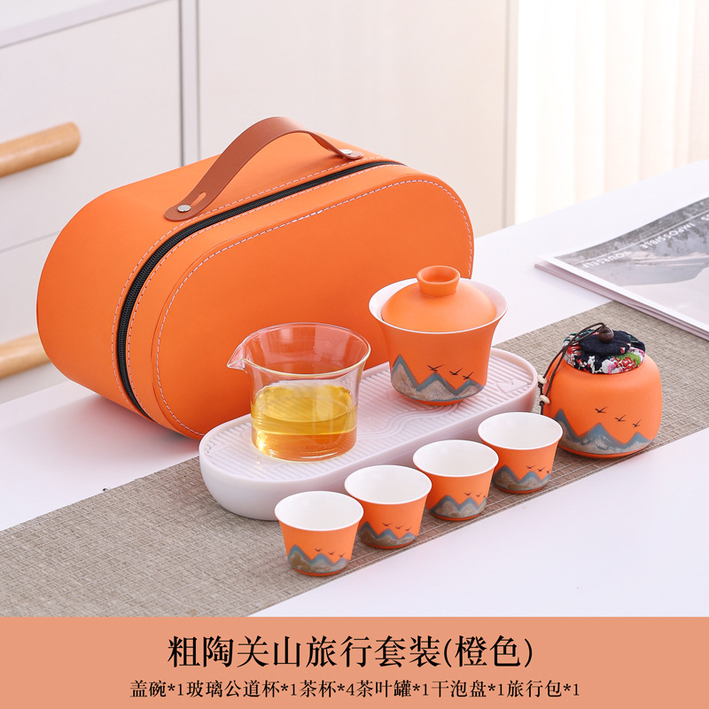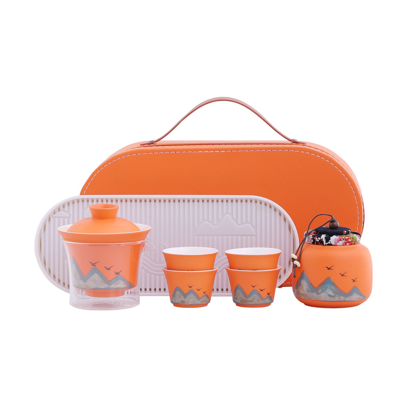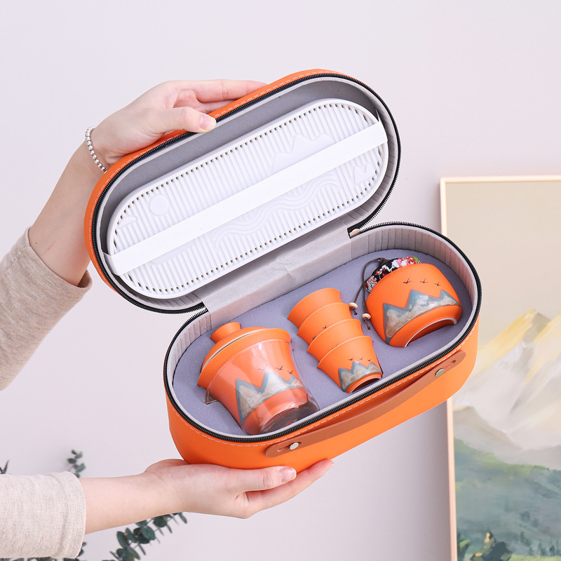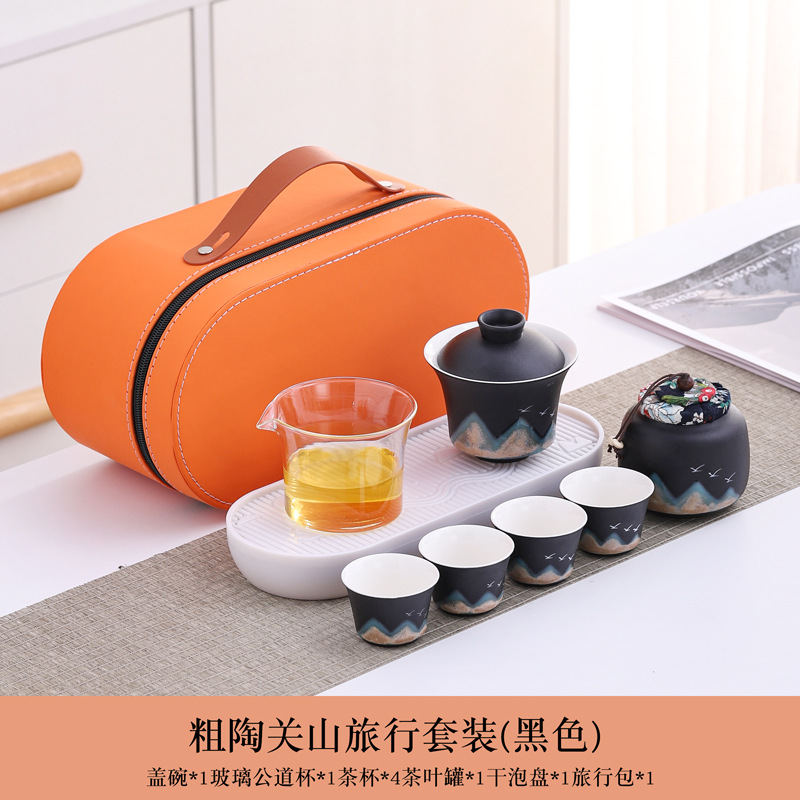 Black pottery kung fu travel tea set one pot four cups home real estate business meeting gifts event accompanying gift