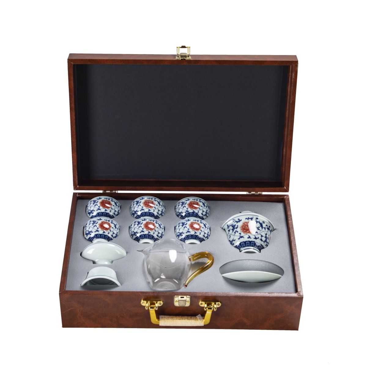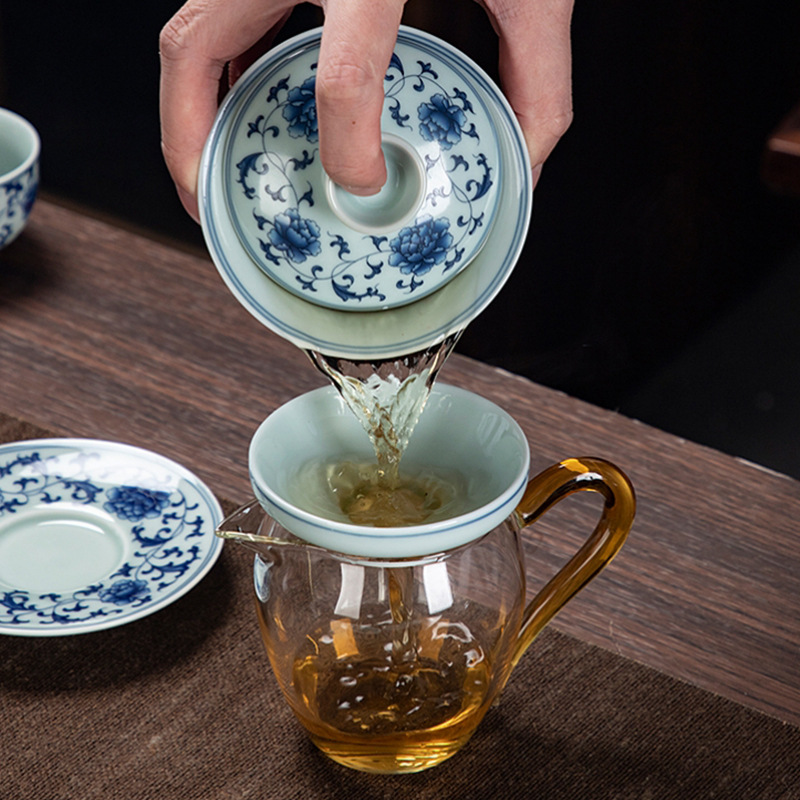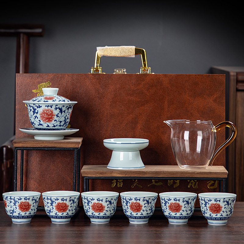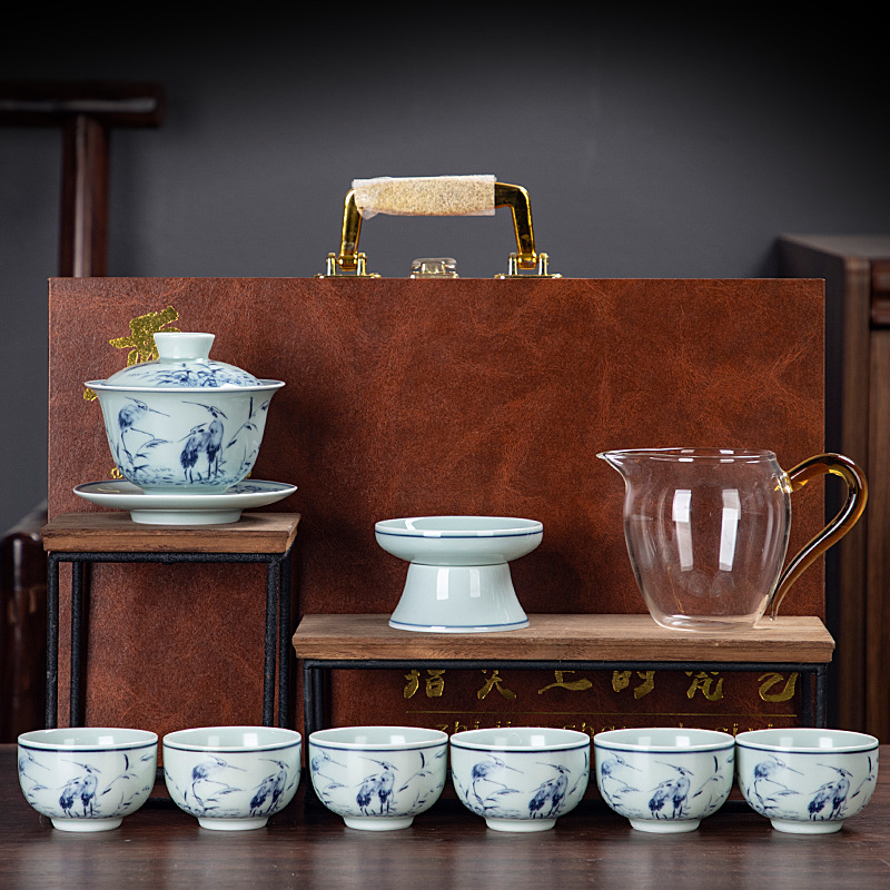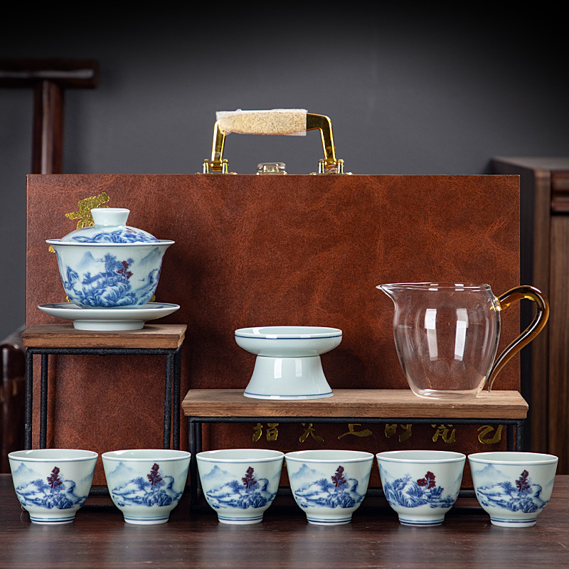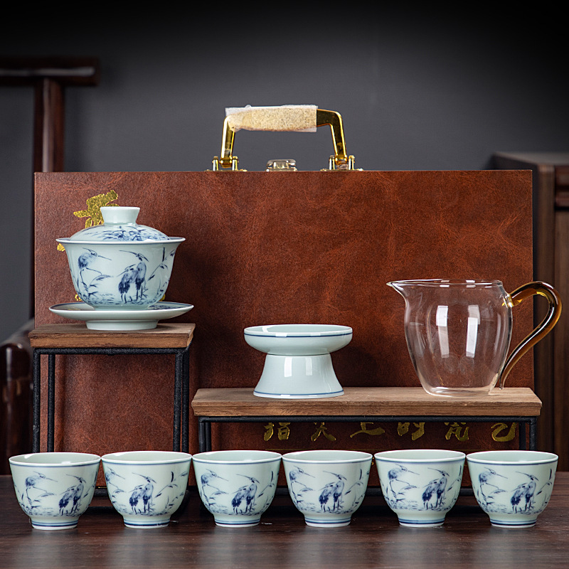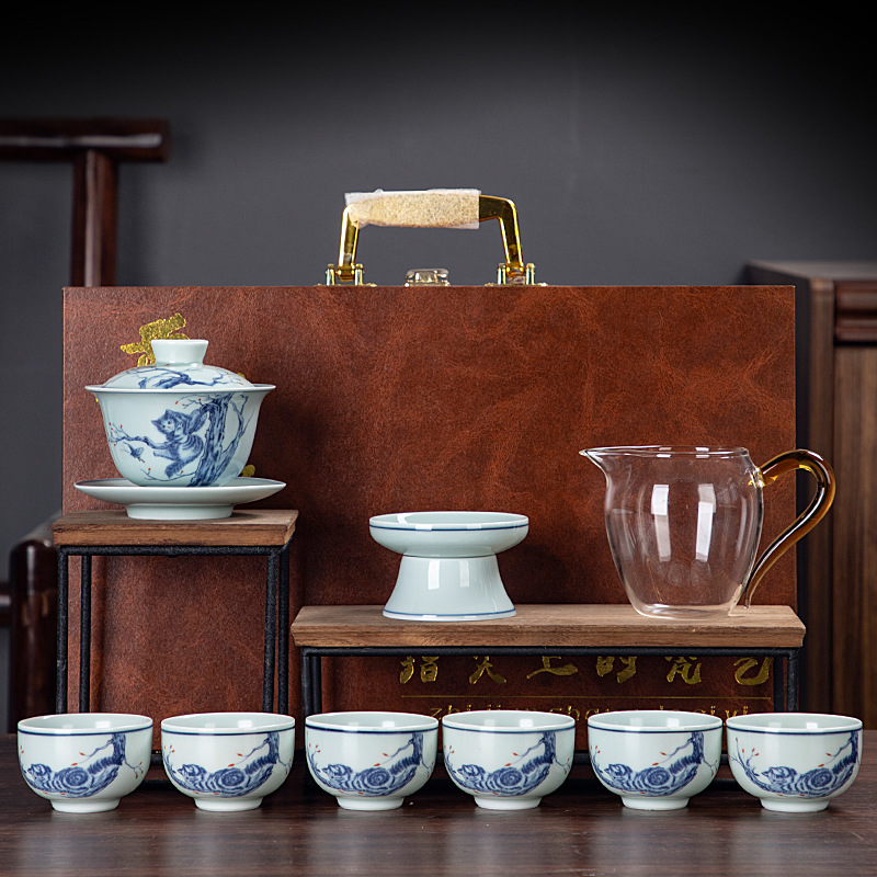 Blue and white glaze ceramic complete set of Kung Fu tea set handmade home business office gift tea maker gift box