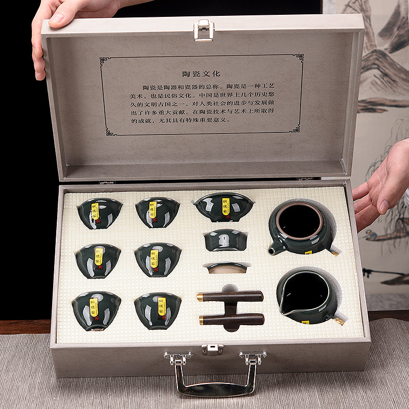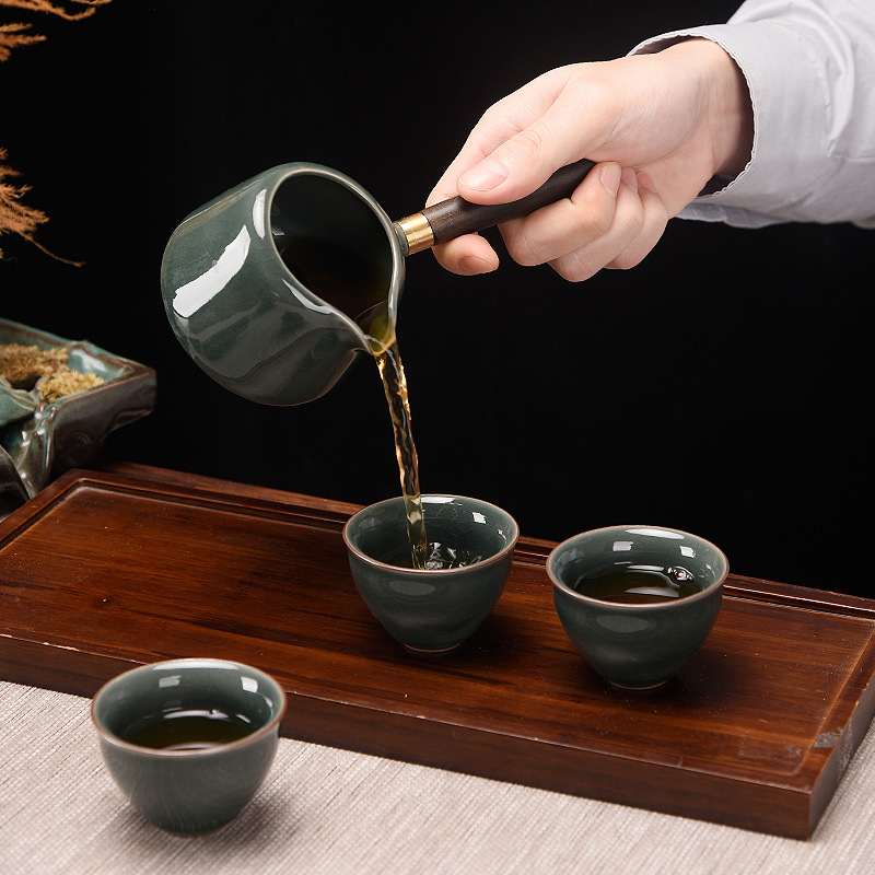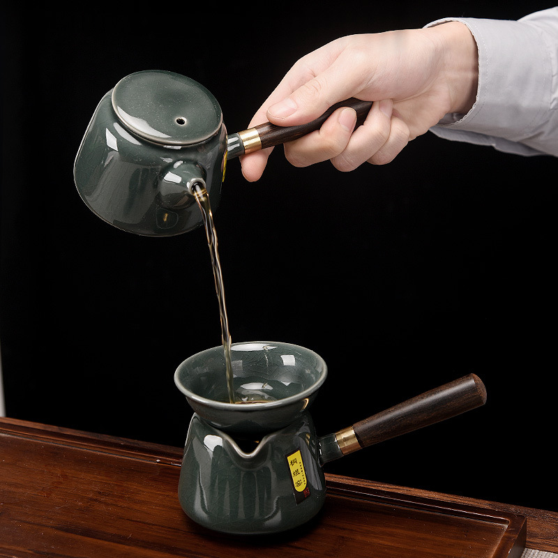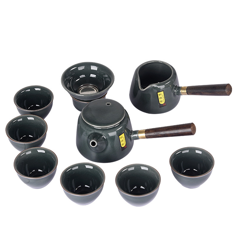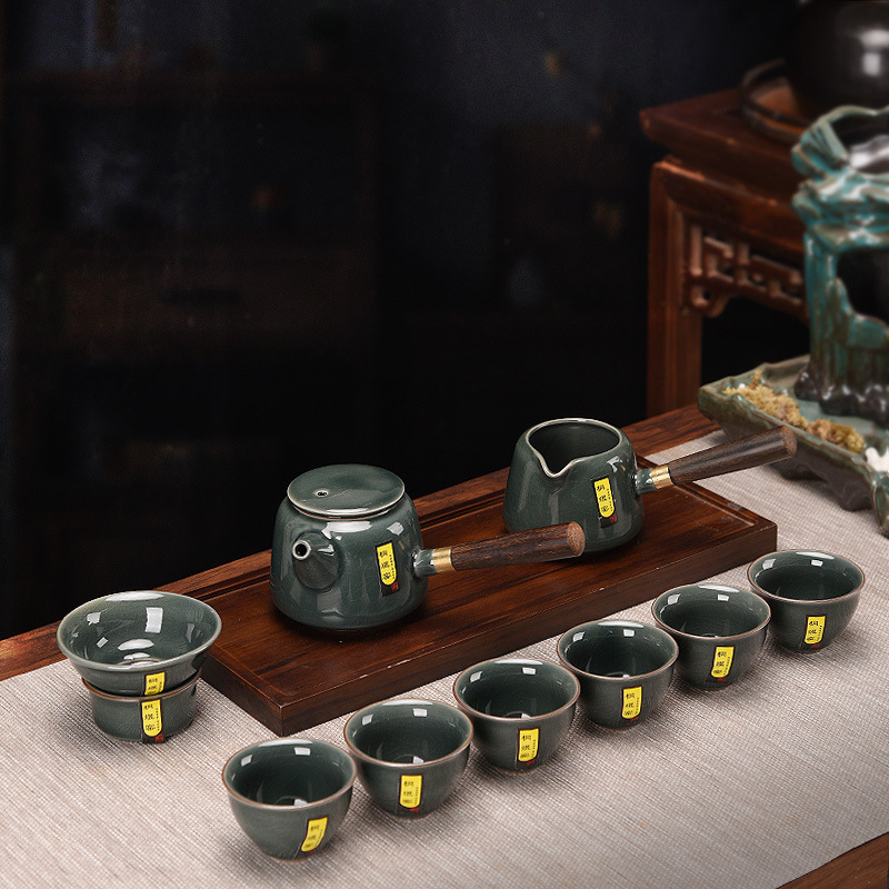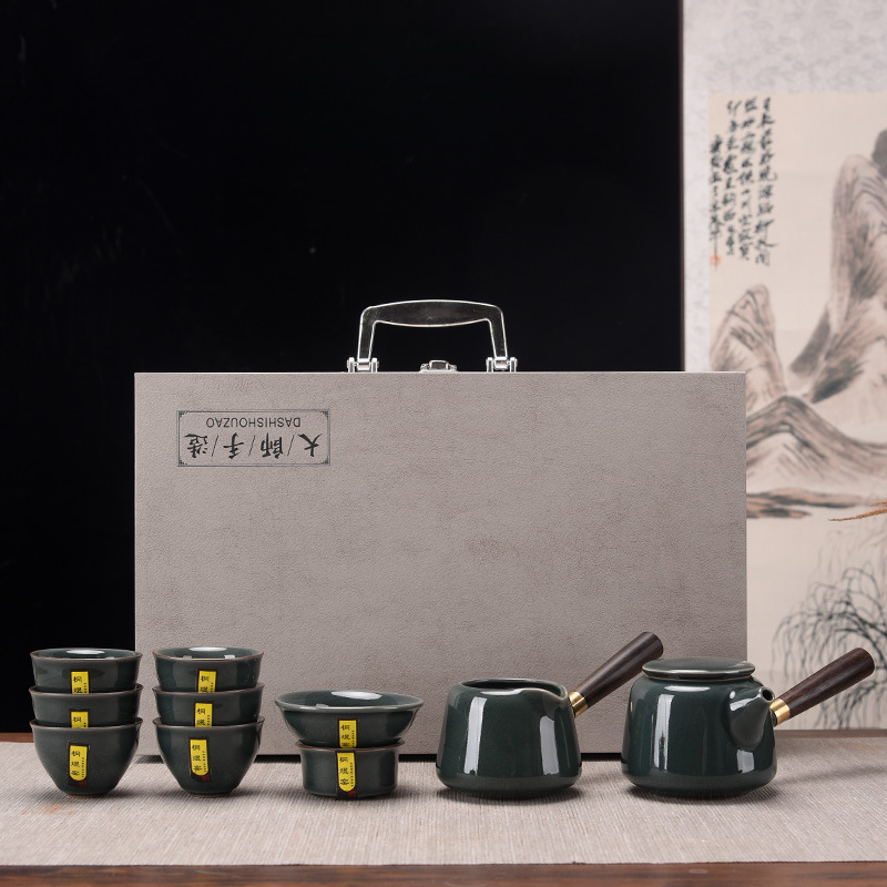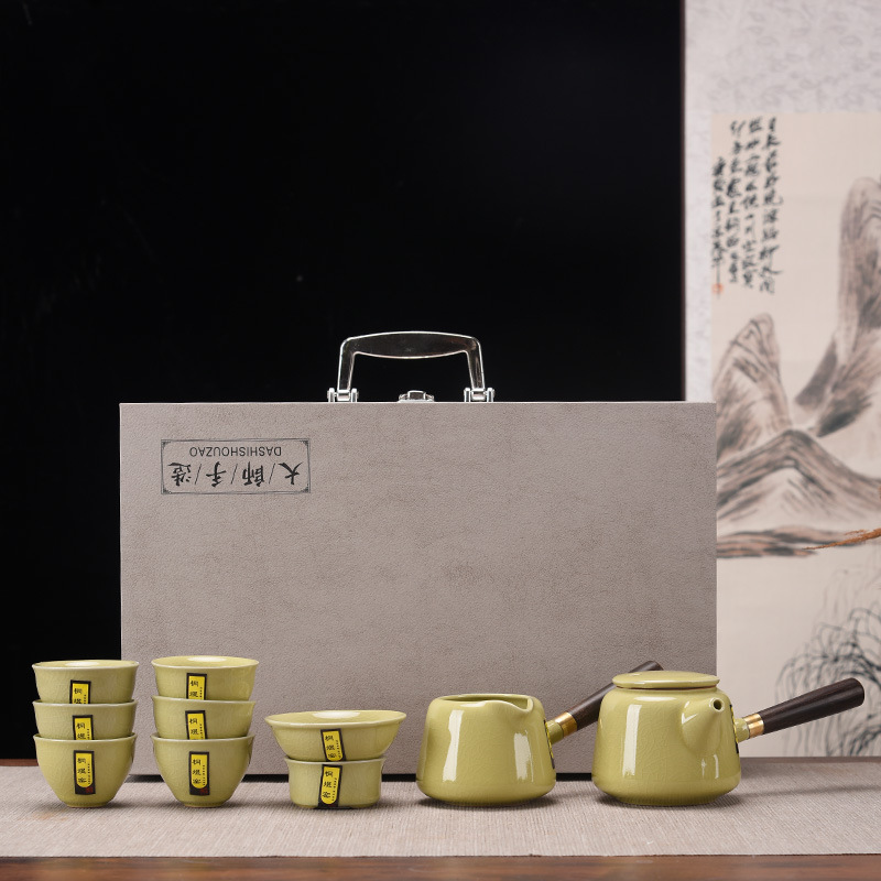 Japanese-style Ge kiln side handle pot Kung Fu tea set, home living room, modern simple teapot tea cup, gift box