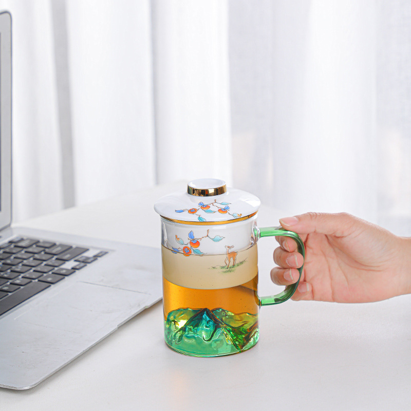 Mug glass tea separation tea cup office sheep fat jade filter tea leak water cup with lid accompanied by hand gift