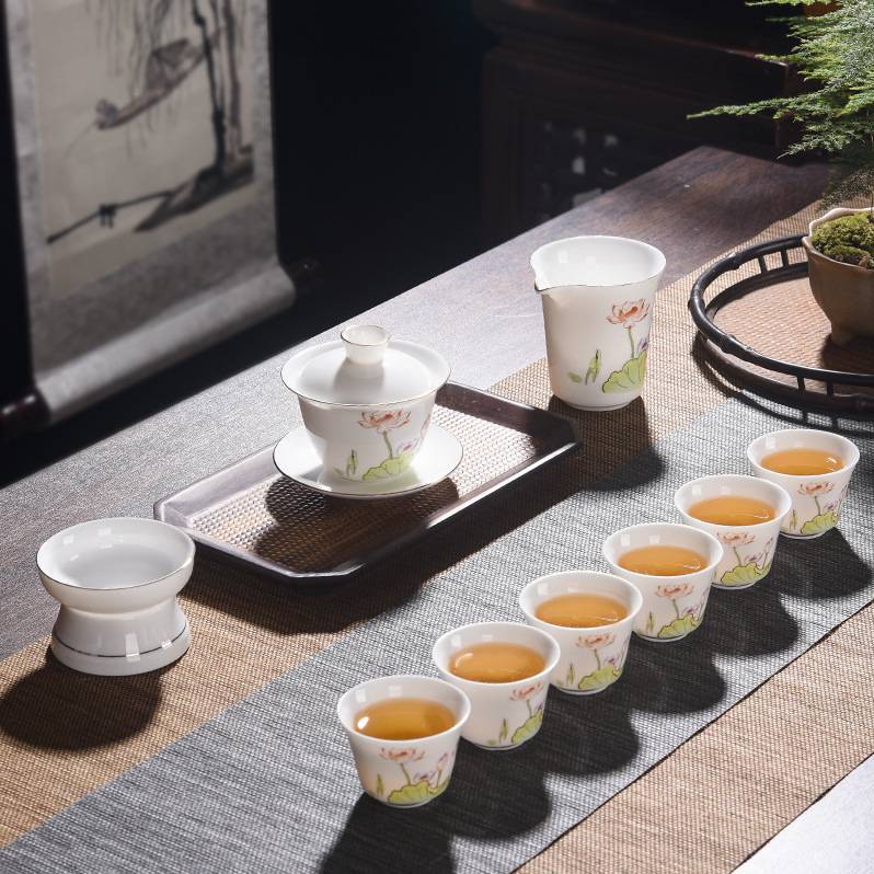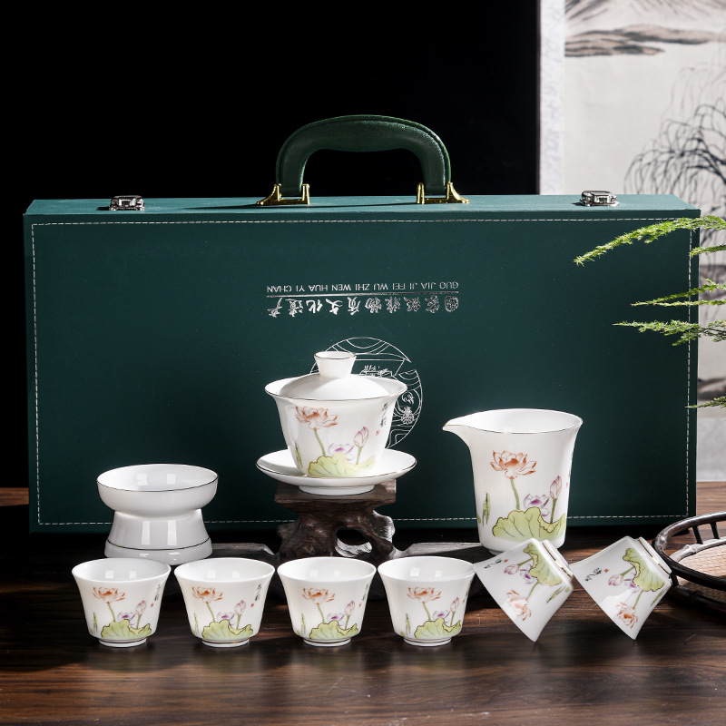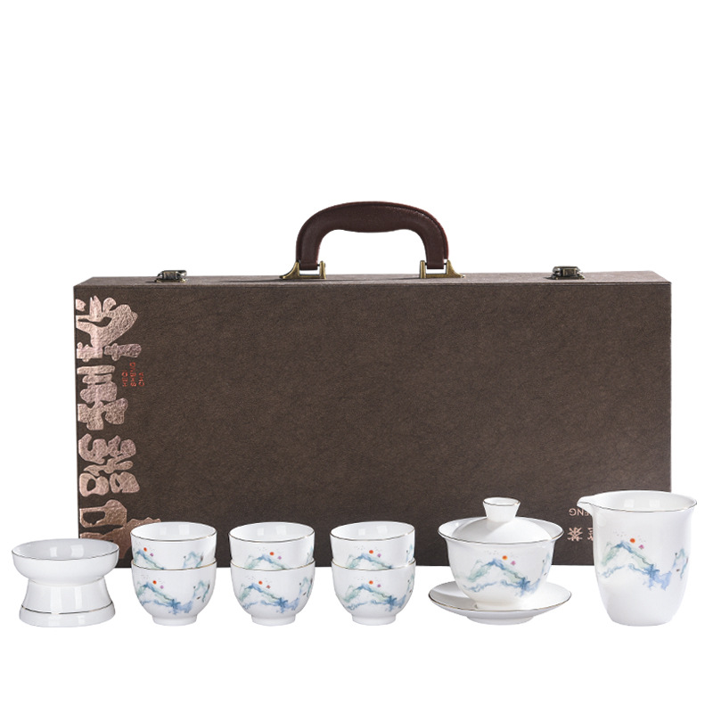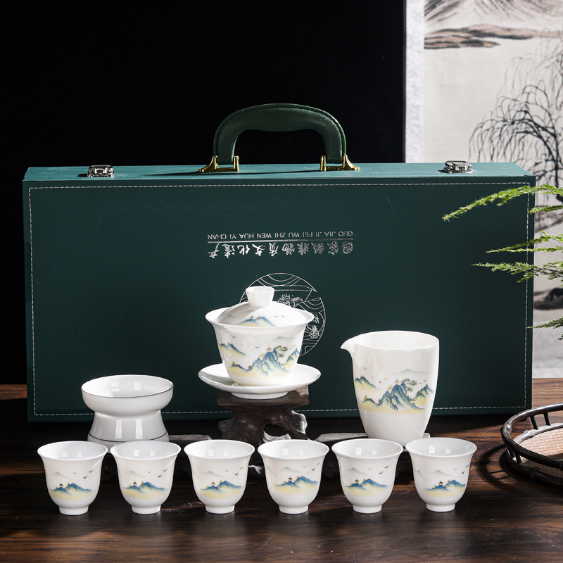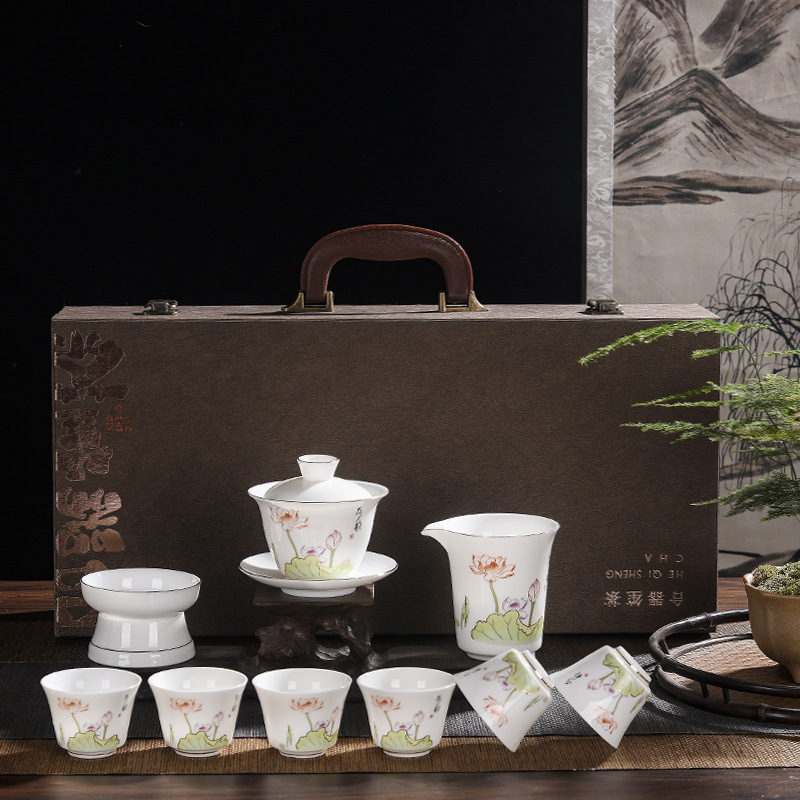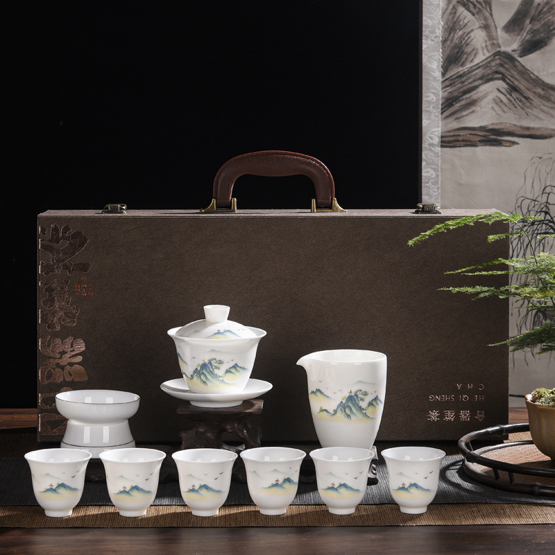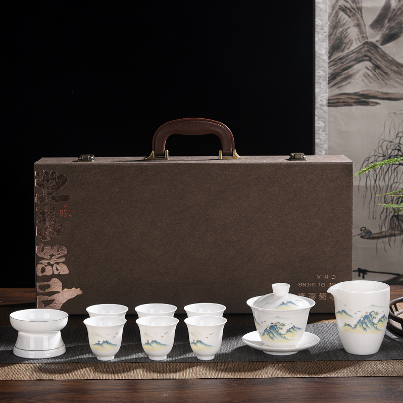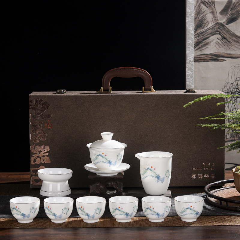 Yangzhi jade light luxury kung fu tea set home office guest tea ceramic gift box set business gift LOGO