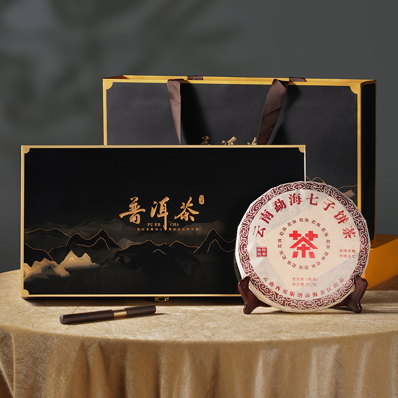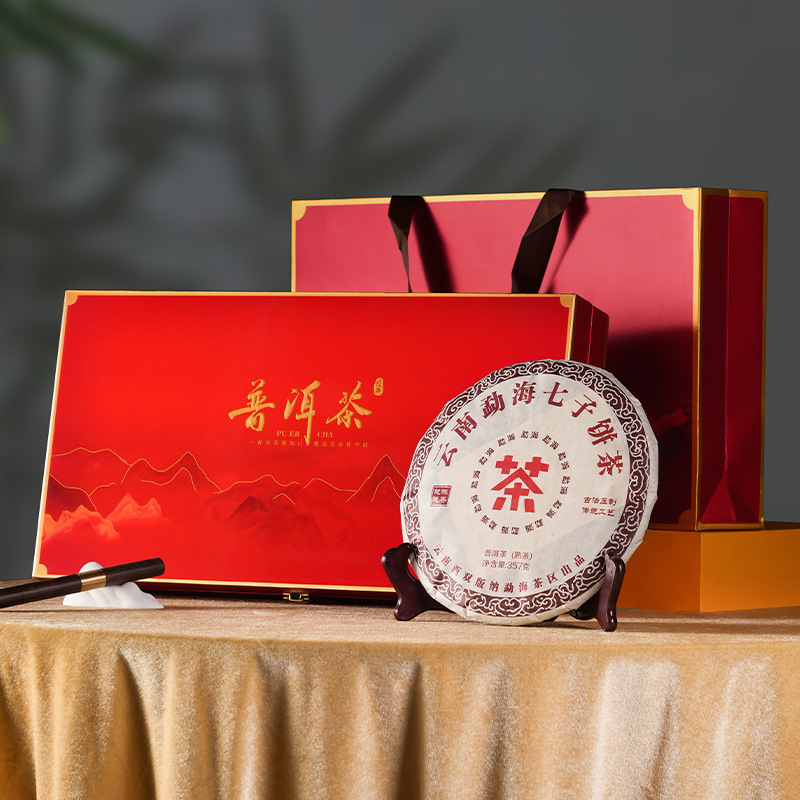 Yunnan Pu 'er tea, ripe tea cake, 357g, tea gift box, Chinese New Year gift, high-end business gift, accompanied by gift, wholesale