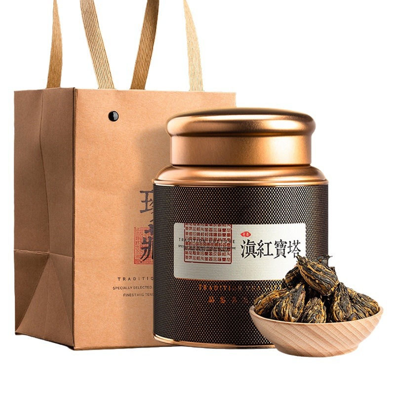 Black Light Series Yunnan Fengqing Ancient Tree Black Tea Dianhong Pagoda 250g, gift bag, gold buds gift box