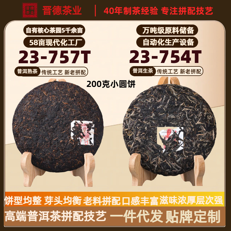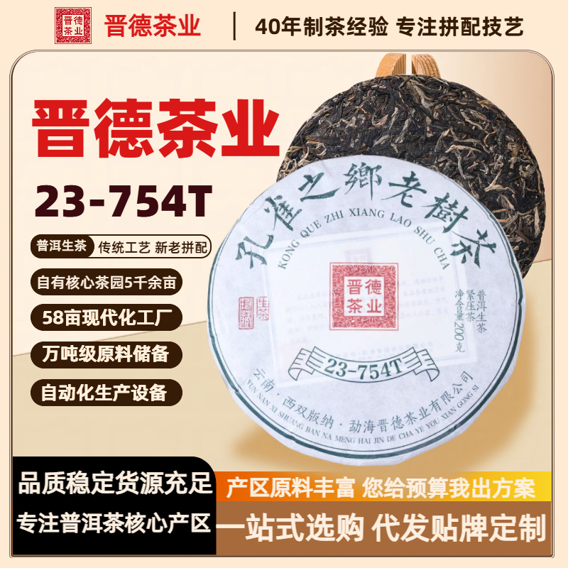 Pu 'er tea cake, raw tea cake, 23-754 T200g, rich aroma, sweet aroma, source factory spot, straight hair