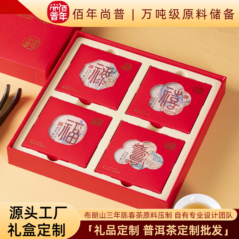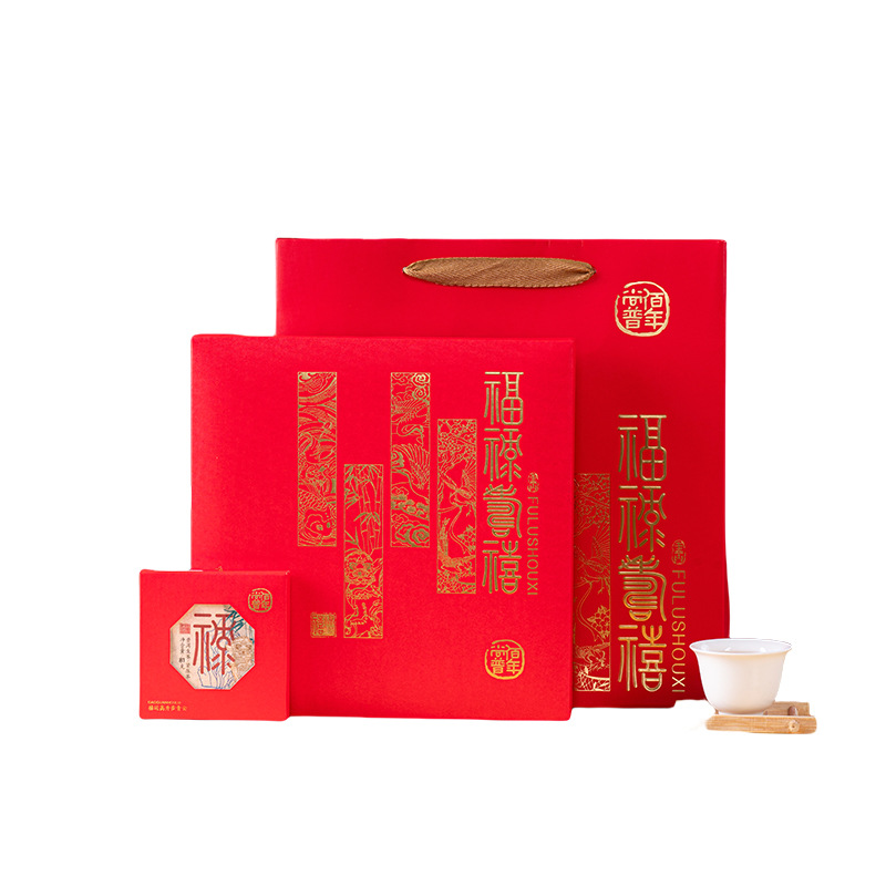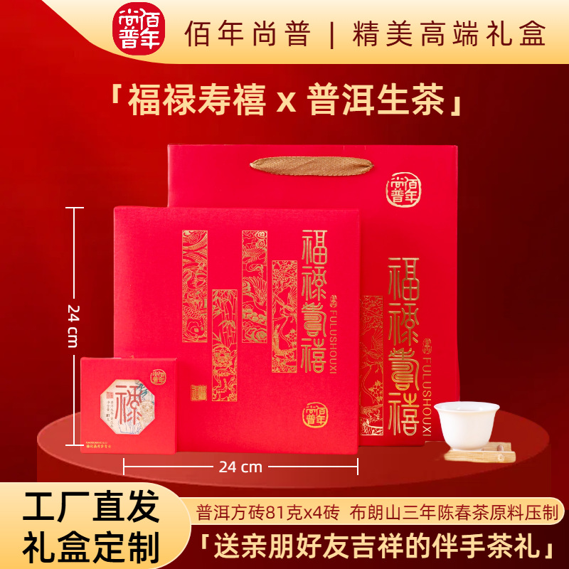 Pu 'er Tea Wholesale [Fu Lu Shou Xi] 324g Pu' er raw tea exquisite gift box, New Year's gift, accompanied by tea gift