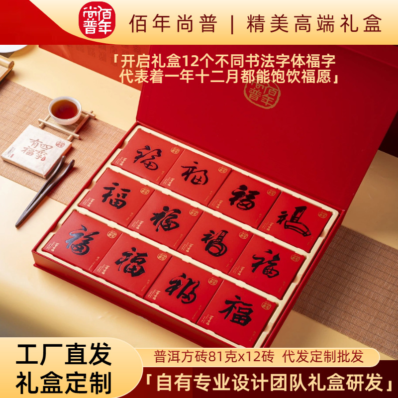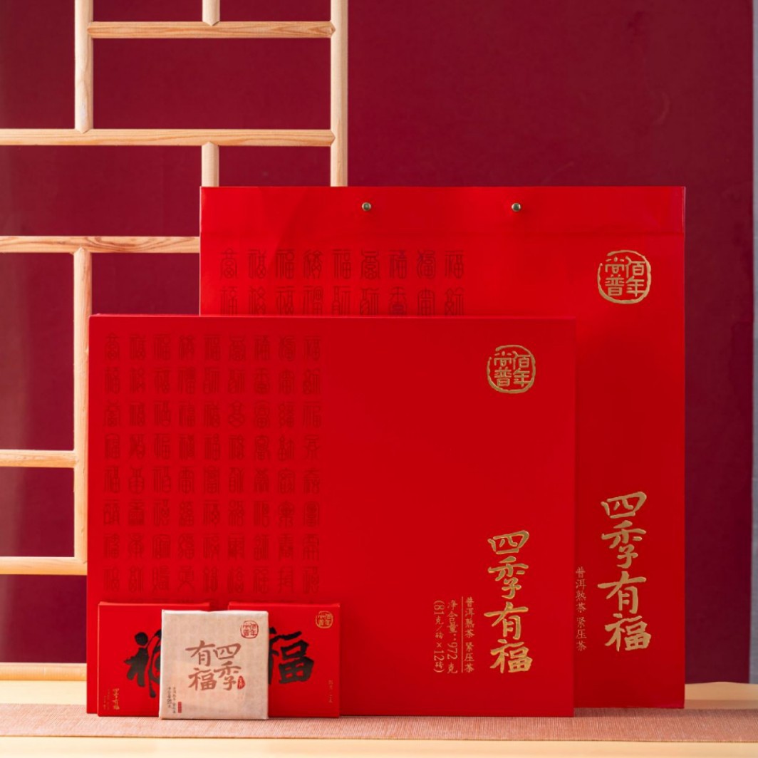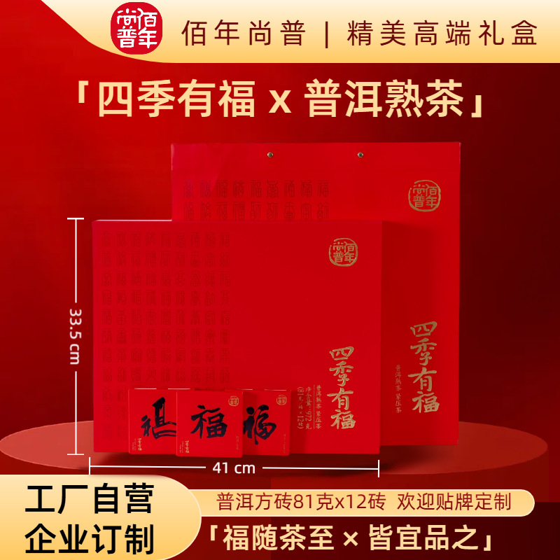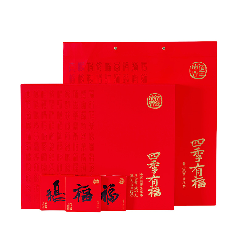 High-end Pu 'er tea gift box [Blessed in the Four Seasons] 972g Pu' er cooked bricks are good gifts and festive wholesale