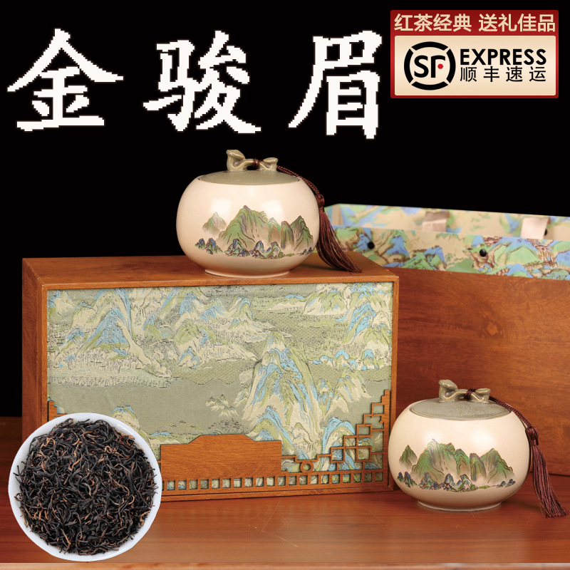 Jinjunmei black tea Wuyishan wholesale, high-end ceramic cans, holiday gifts, tea boxes, gift boxes, gifts and hand gifts