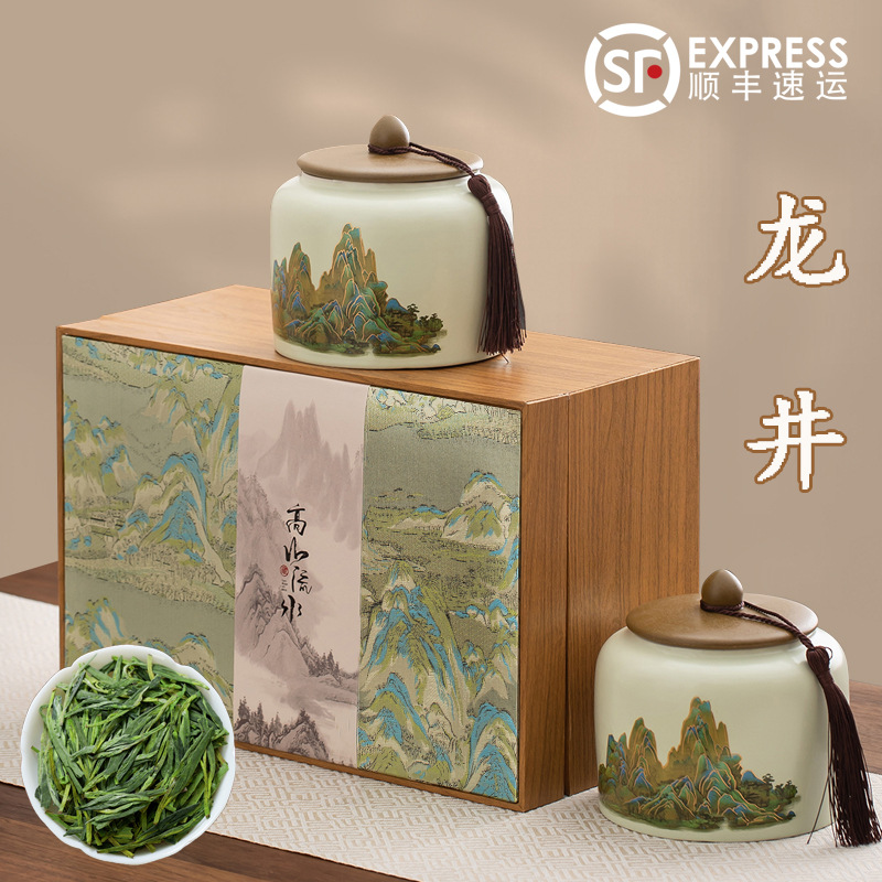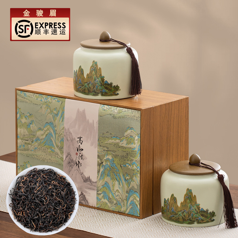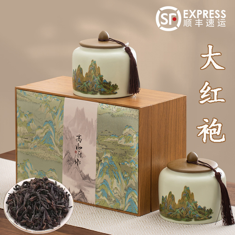 National style double ceramic cans black tea oolong tea green tea high-end tea gift box gift giver gift tea drink yourself