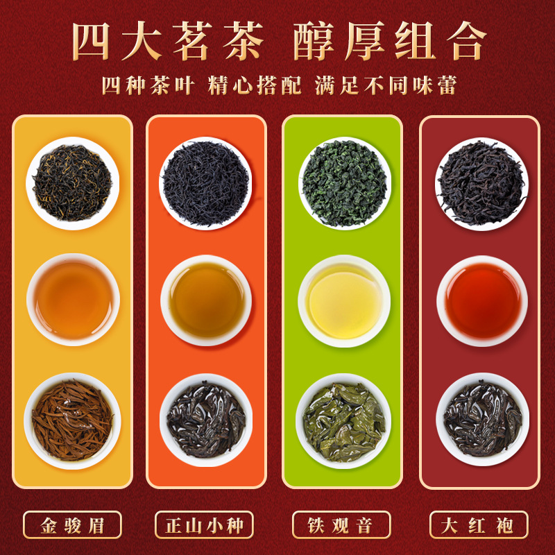 Four big tea, small jar, black tea, Zhengshan small variety, Jinjunmei oolong tea, gift box, high-end gift for others