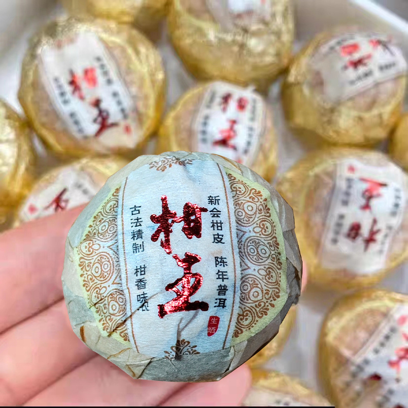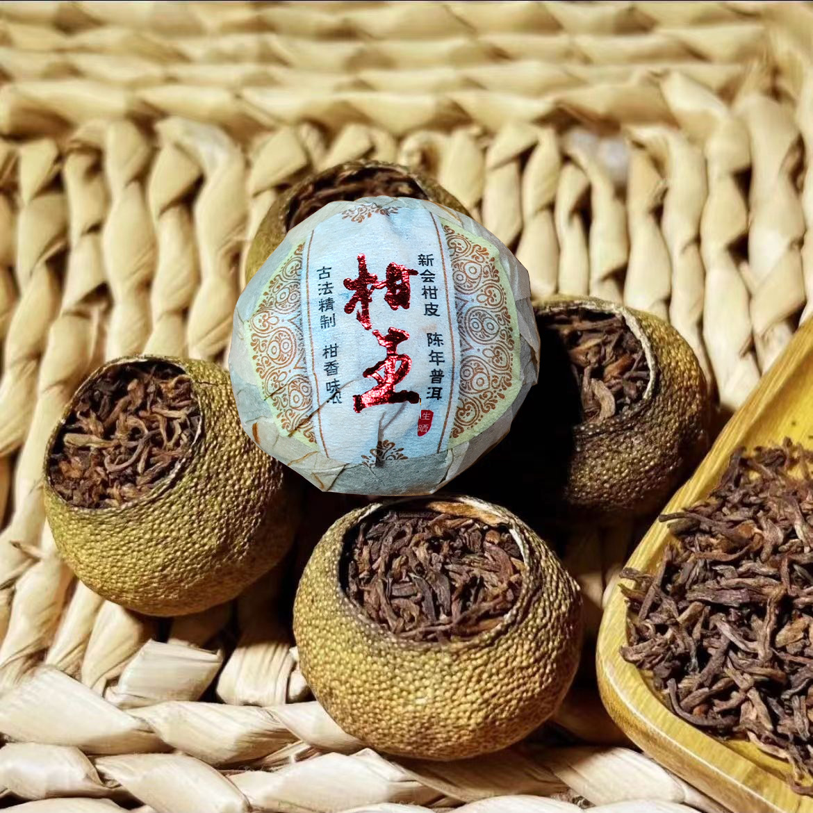 Xinhui small green tangerine, wholesale, green peel, tangerine peel, raw, sun-dried Pu 'er tea, cooked tea, small green tangerine, tea, canned, gift box, New Year's goods