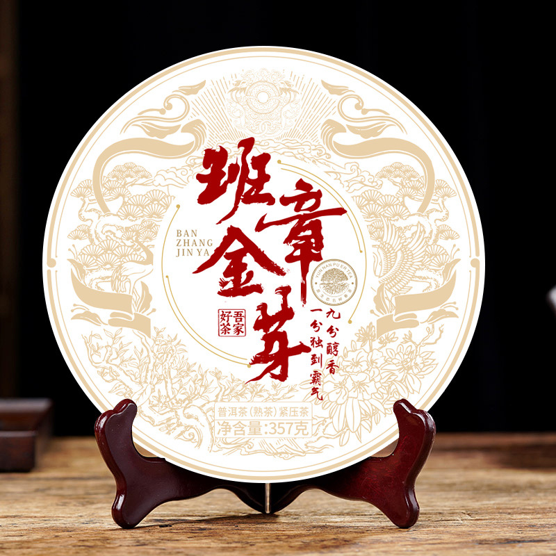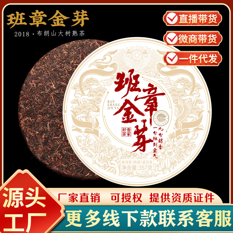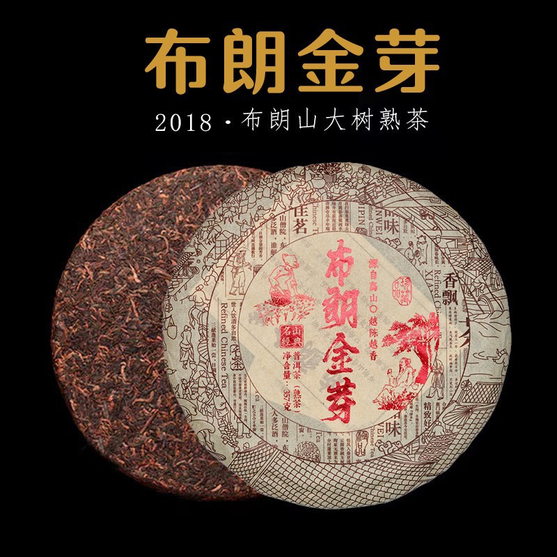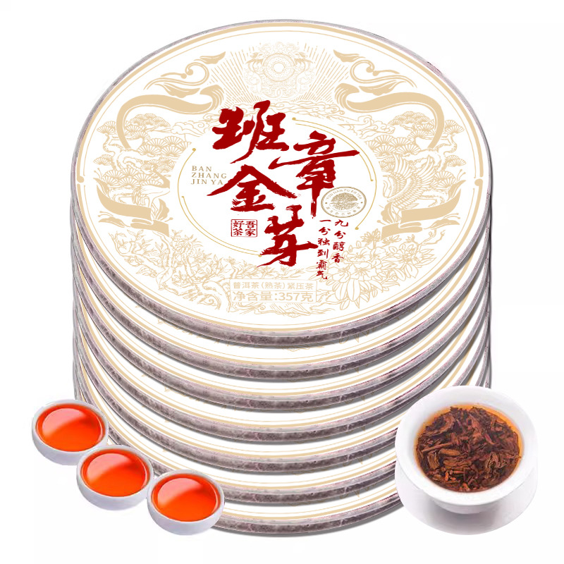 Pu 'er ripe tea, golden bud, ripe tea cake, ancient tree, old tea, Yunnan Menghai Pu' er tea, raw tea cake, tea wholesale