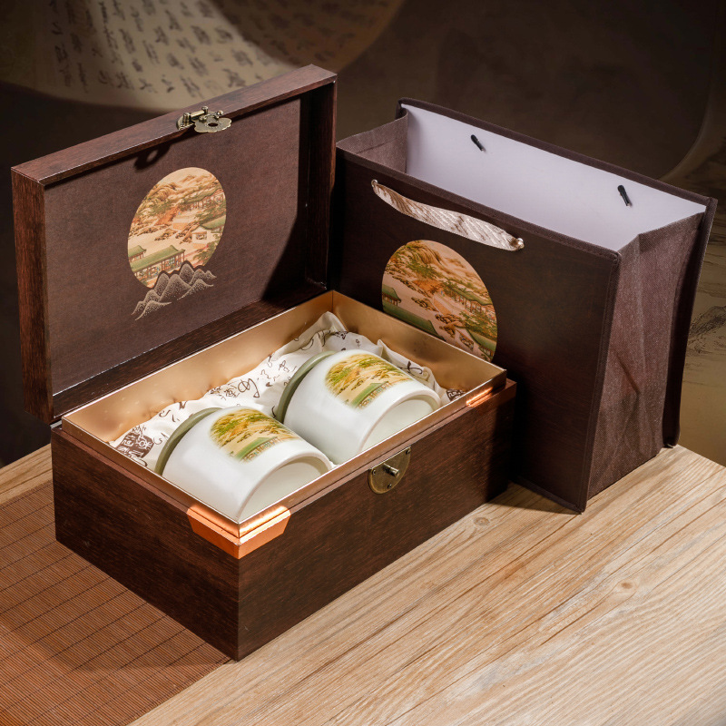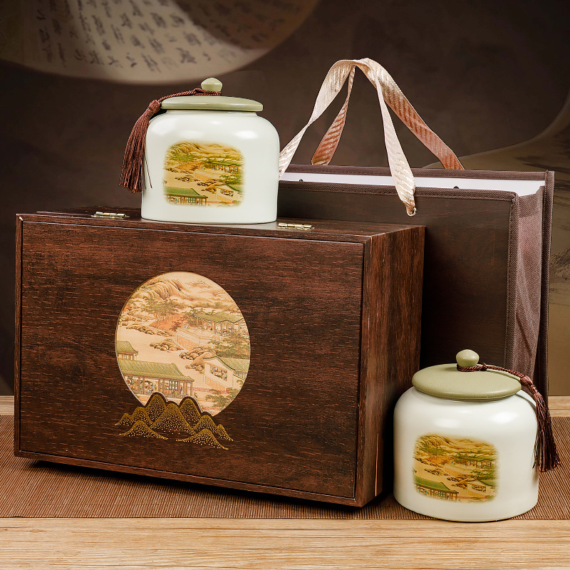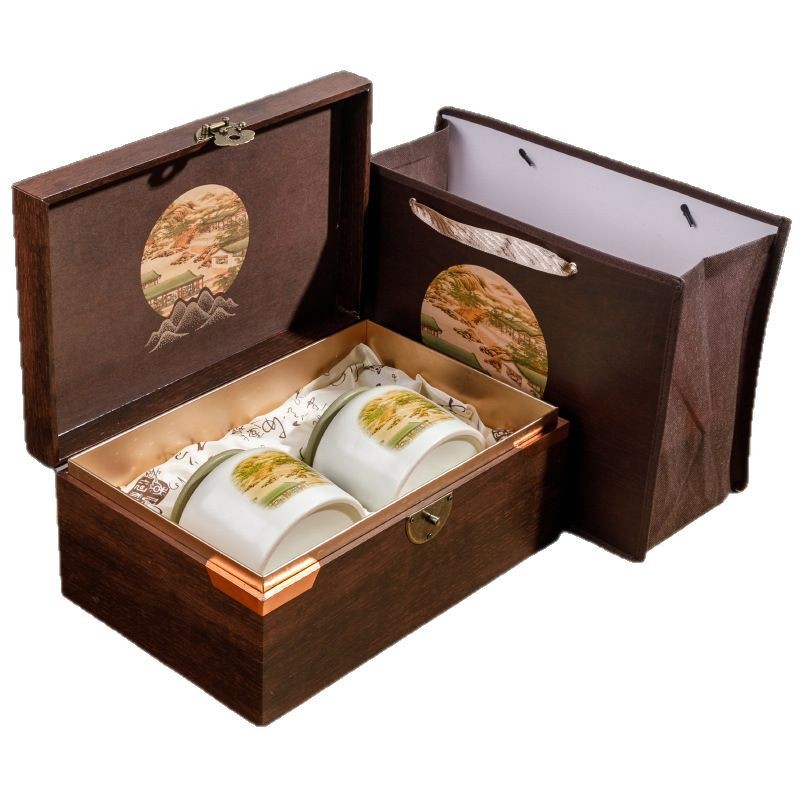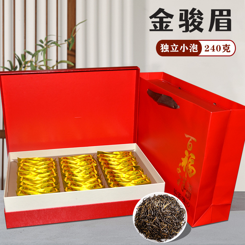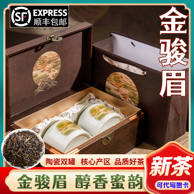 Strictly selected tea gift box to give to people Jin Junmei high-end wooden box ceramic canned black tea for New Year's New Year tea gift to give gifts