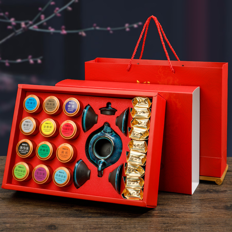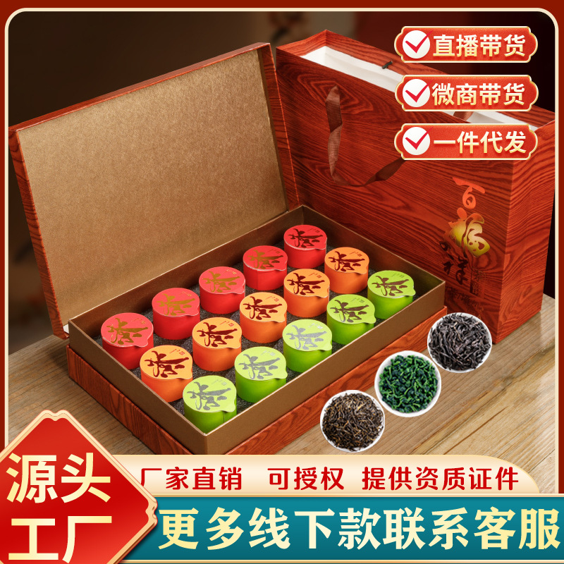 Strictly select small cans of tea, gift box, Jinjunmei black tea, Tieguanyin Dahongpao, three big sauces, accompanied by hand-gift tea