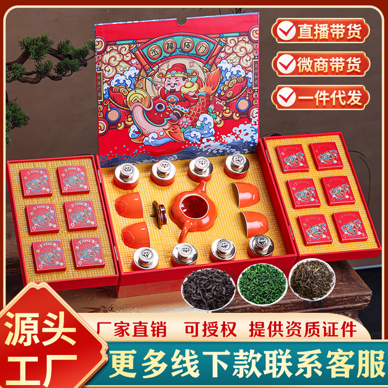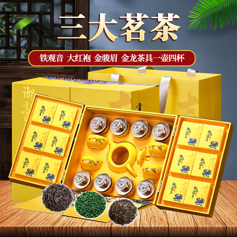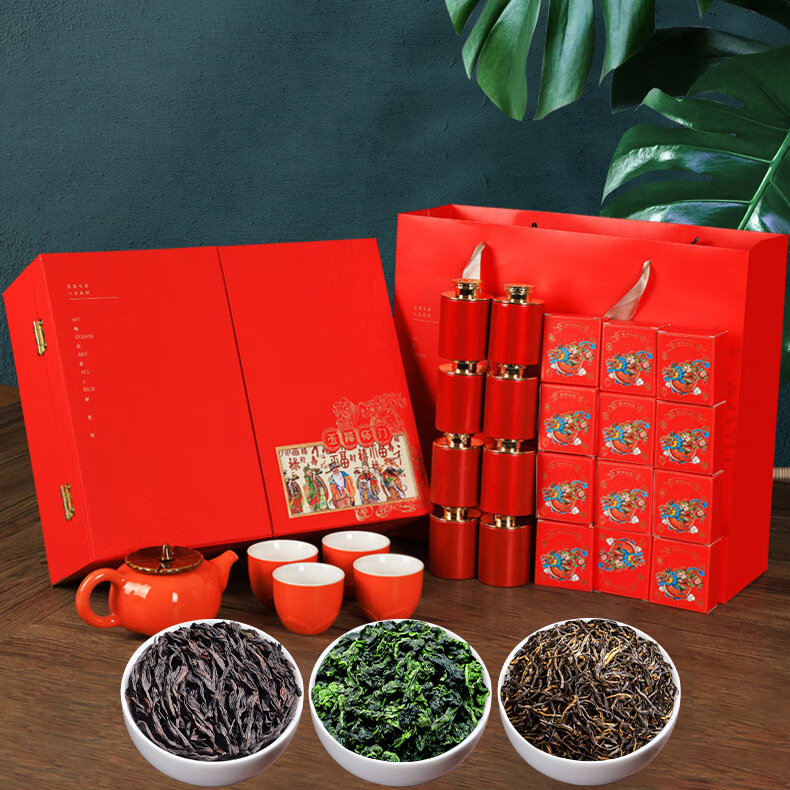 Tea gift box, Jinjunmei black tea, cinnamon, Tieguanyin, oolong tea, combination tea, high-end Mid-Autumn Festival gifts for elders