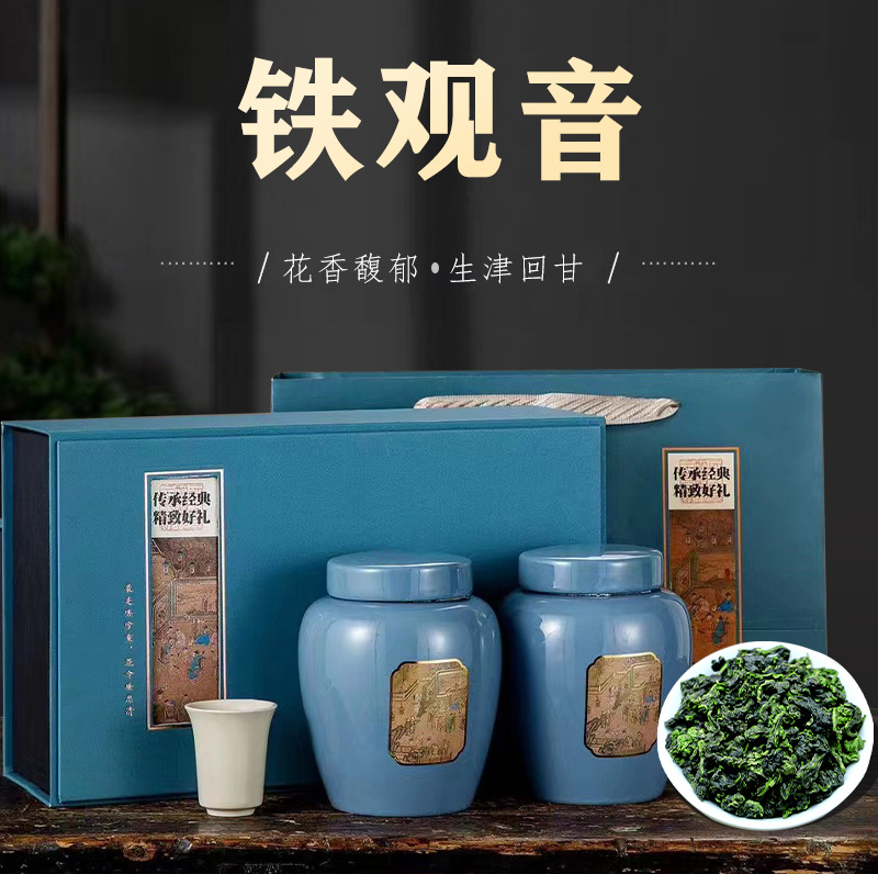 High-end tea gift box Dahongpao tea gift box, high-end gift, retro ceramic canned oolong tea gift