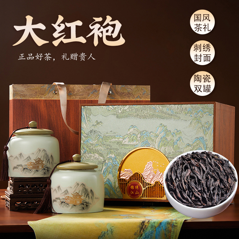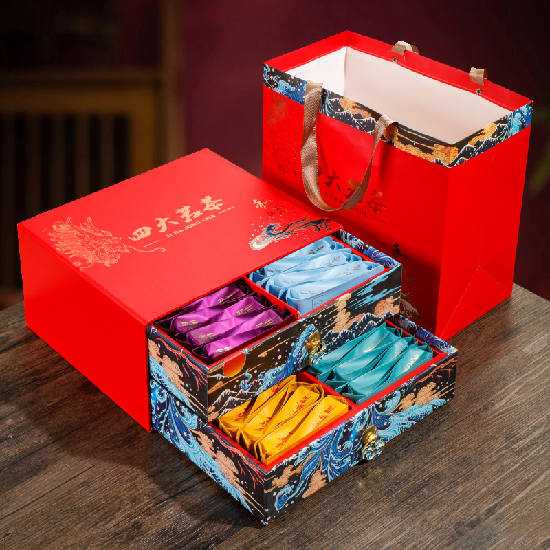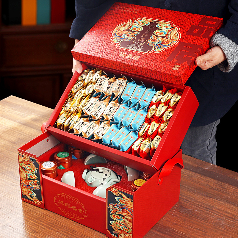 Tea high-end gift box Tieguanyin Dahongpao Oolong tea Jinjunmei black tea double-layer cans Mid-Autumn Festival tea gift