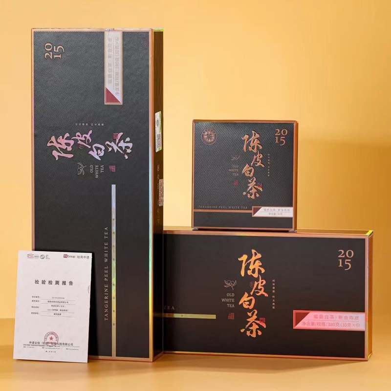 Orange peel white tea Fuding white tea 2015 old white tea with 2013 Xinhui orange peel silk cigarette stick iron box 180g