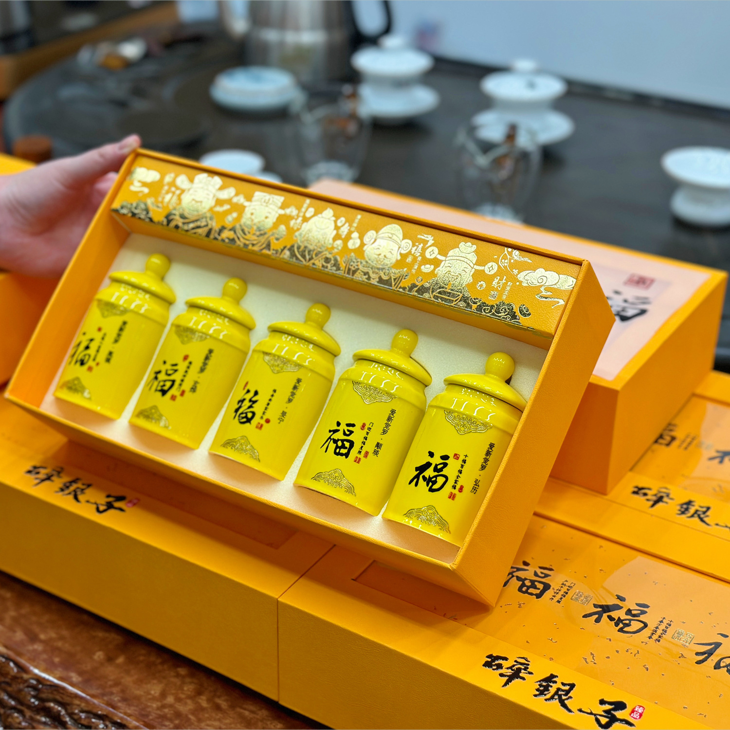 Yunnan Pu 'er tea ancient tree Pu' er ripe tea glutinous rice fragrant broken silver aged tea fossil ceramic gift box, 500g