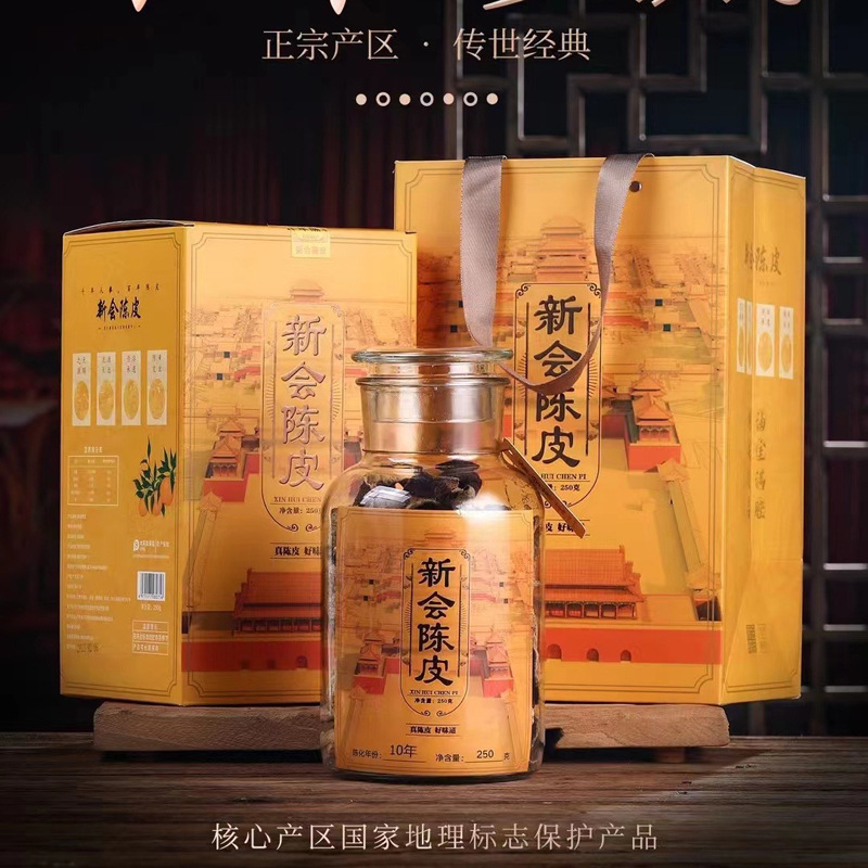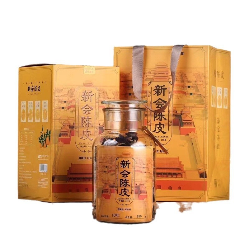 Guangdong old tangerine peel 10-year-old gift box, Guangdong specialty old tangerine peel, glass cans, wholesale, and quantity.