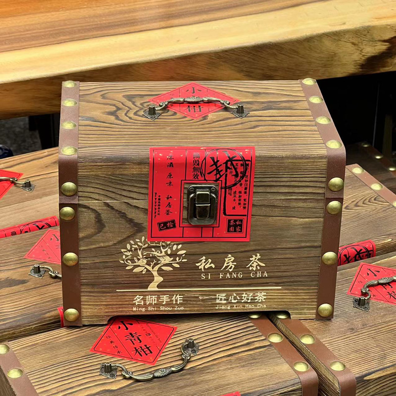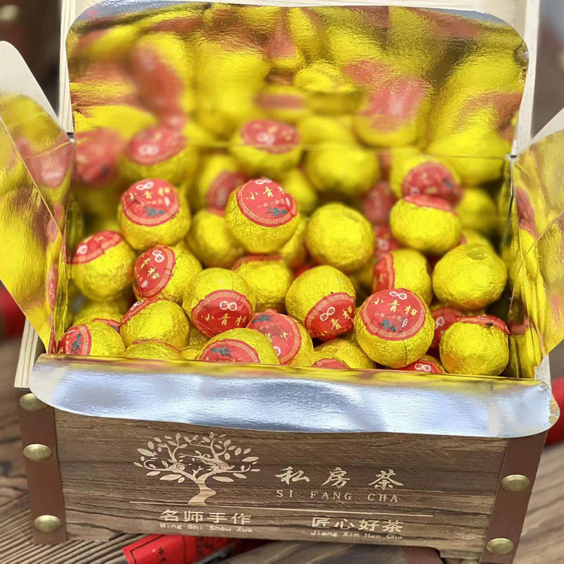 Xinhui small green citrus, aged Menghai Pu 'er tea, cooked tea, raw and sun-dried green citrus, wooden box, gift box, 500g, wholesale in bulk