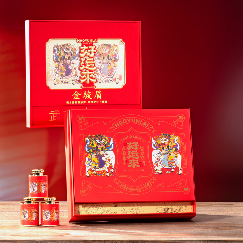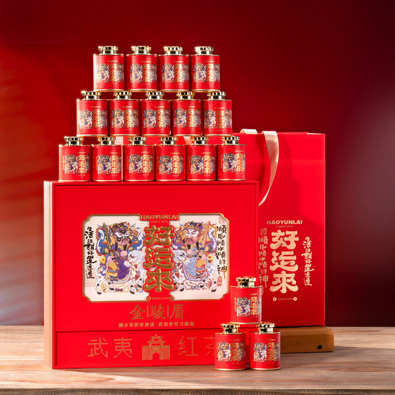 New tea Wuyi black tea, nectar fragrance, yellow buds, gold eyebrows, flower fragrance, small variety of tung wood tea, 18 small cans, New Year goods gift box