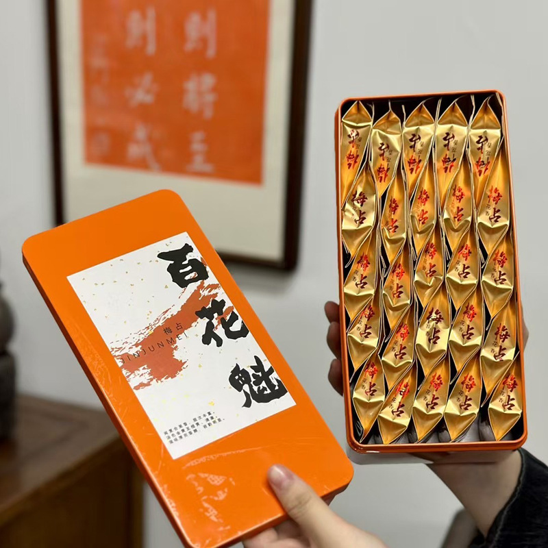 New product Wuyi black tea, flower fragrance, plum, golden eyebrows, melon seeds, golden plum, black tea, alpine tea, gift box, 125g