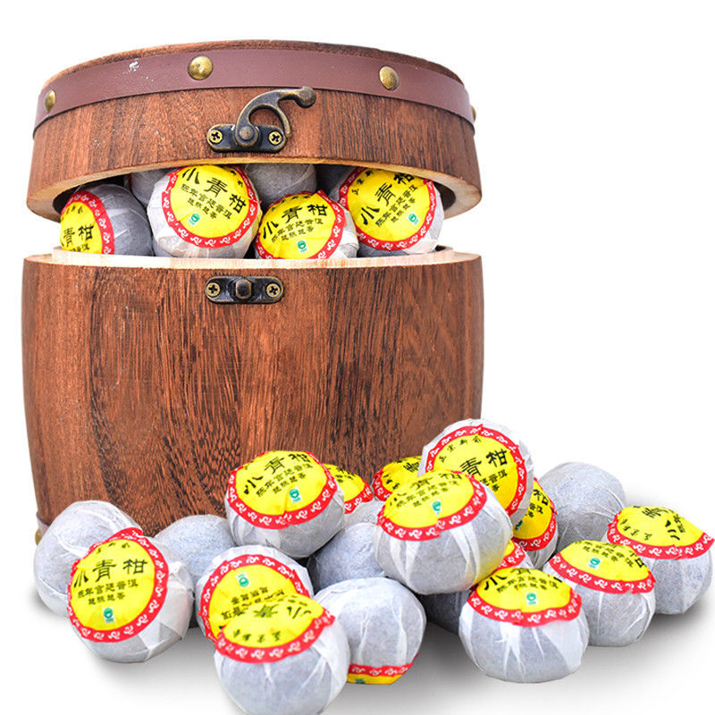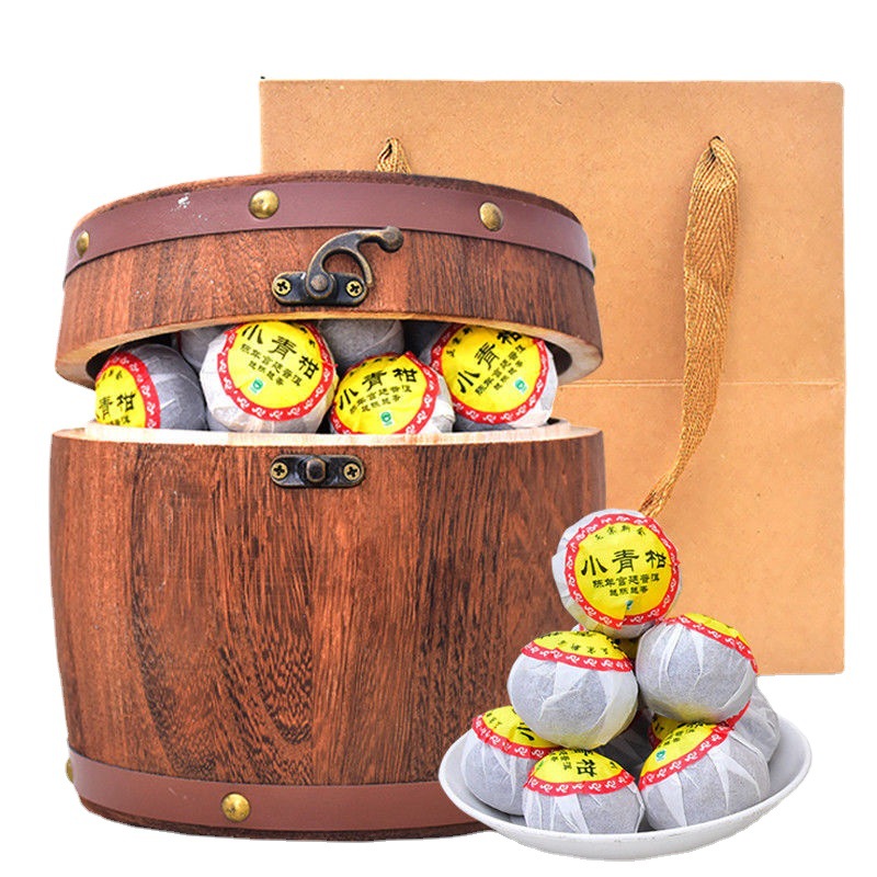 Hengyun and Xiaoqinggan Pu 'er Tea Xinhui Xiaoqinggan Tangpi Pu' er Tea Orange Tea as a gift in a pound of wooden barrels