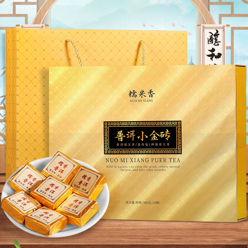 Gifts during the festival, Yunnan glutinous rice Pu 'er tea, Menghai Pu' er ripe tea, glutinous rice bricks, 300g, gift box.