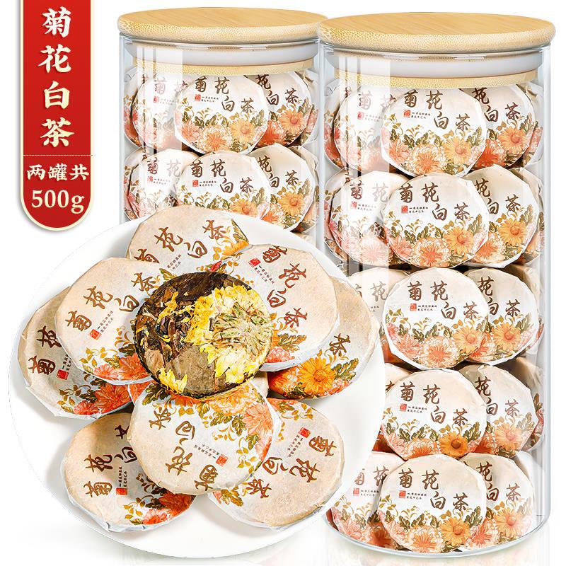 Fujian Fuding Old White Tea Shoumei Chrysanthemum White Tea Small Tea Cake Old White Tea Portable Biscuit Tea 500g gift canned