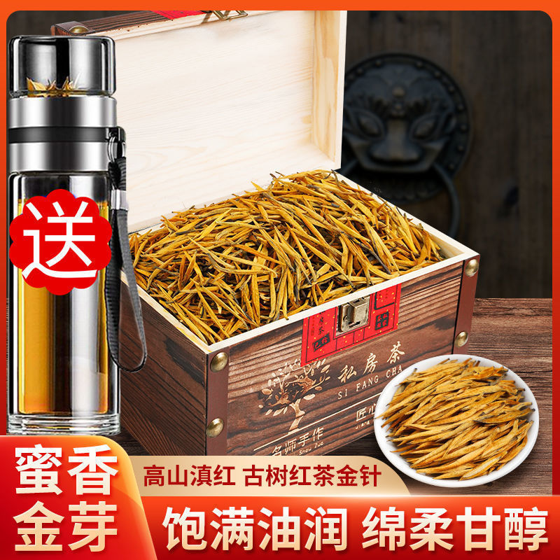 2022 new tea Yunnan red big golden needle Yunnan ancient tree tea super strong fragrance Fengqing big golden needle 500g in gift box