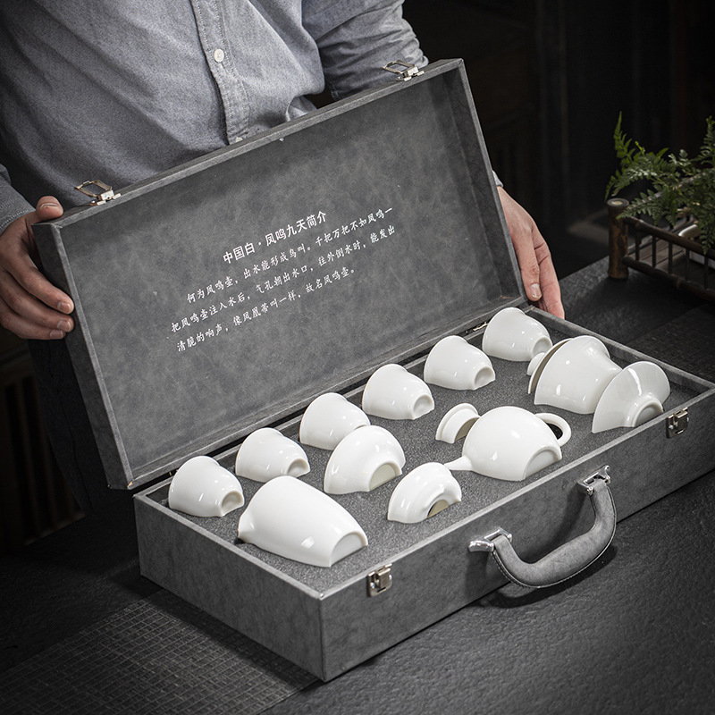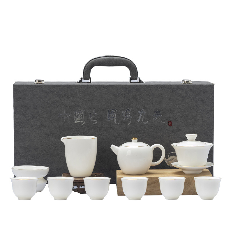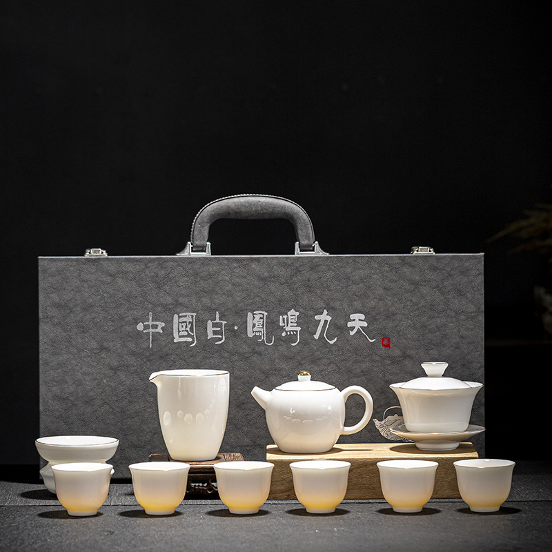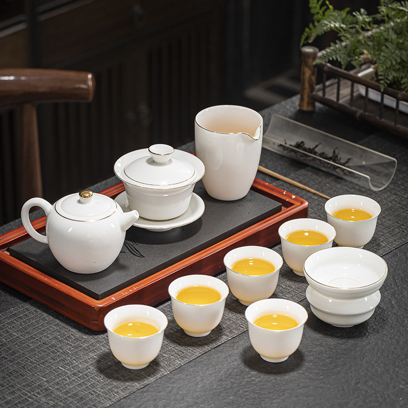Tea set white porcelain ice type household sheep fat jade porcelain kung fu tea set simple Fengming teapot tea cup complete light luxury