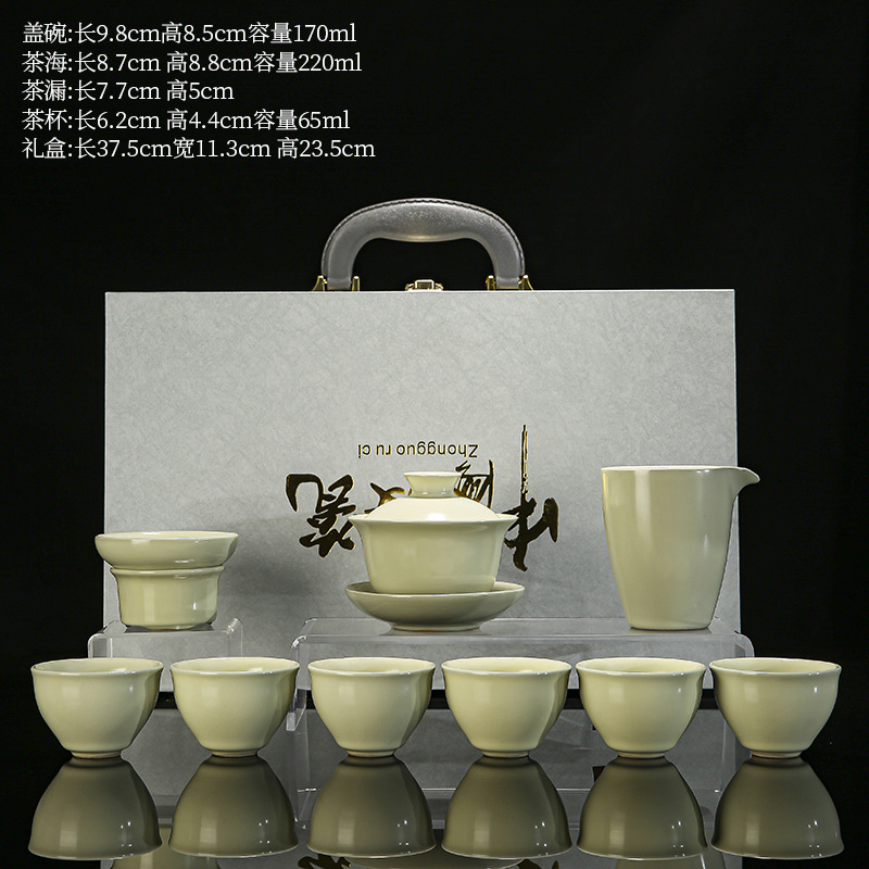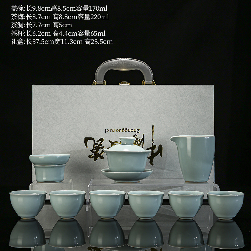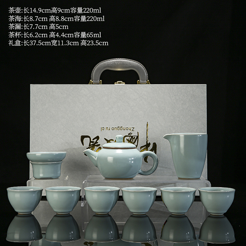 Tianqing Ru kiln Ru porcelain tea set New style Kung Fu tea cup High-end light luxury ceramic cover bowl brewing teapot tea cup