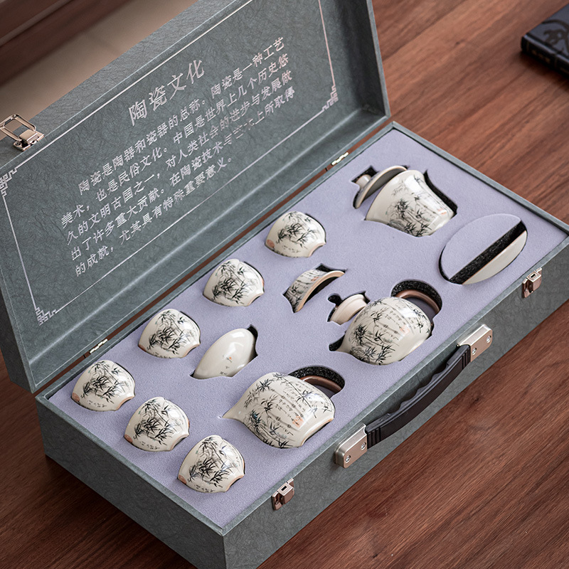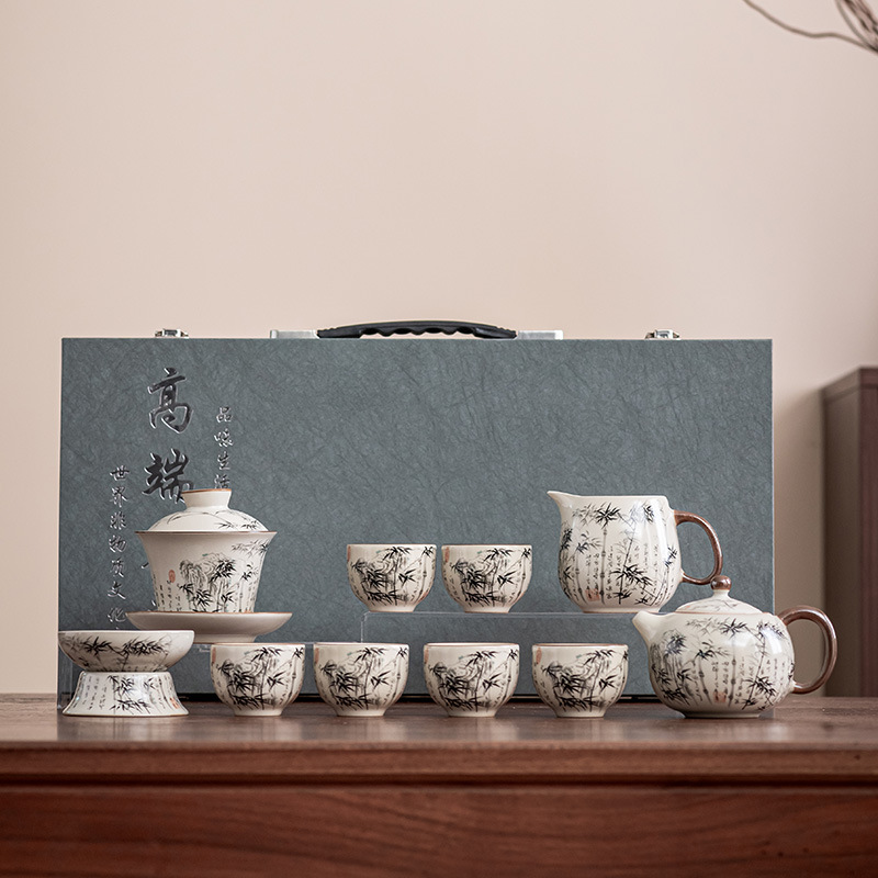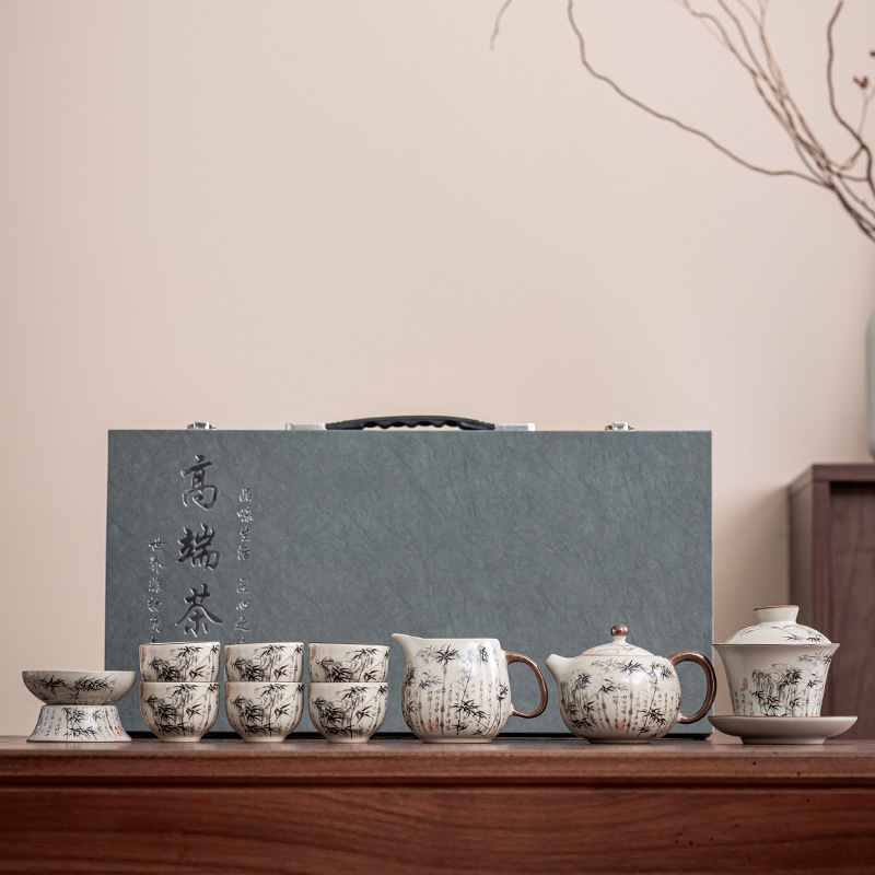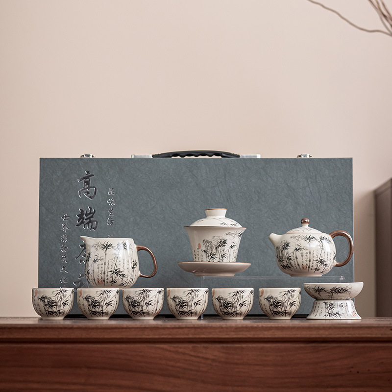 Bamboo Ru kiln tea set, high-end complete set, 2024 new household tea cups, teapot, ceramics, Chinese gift box