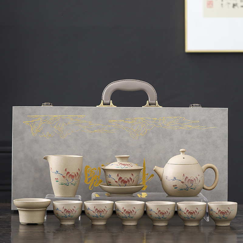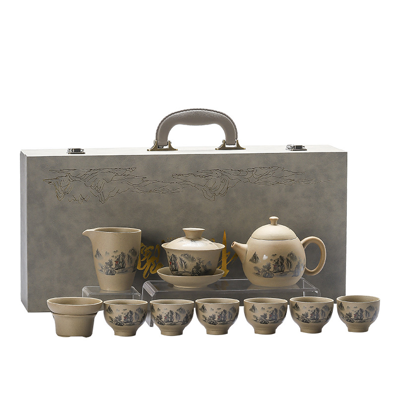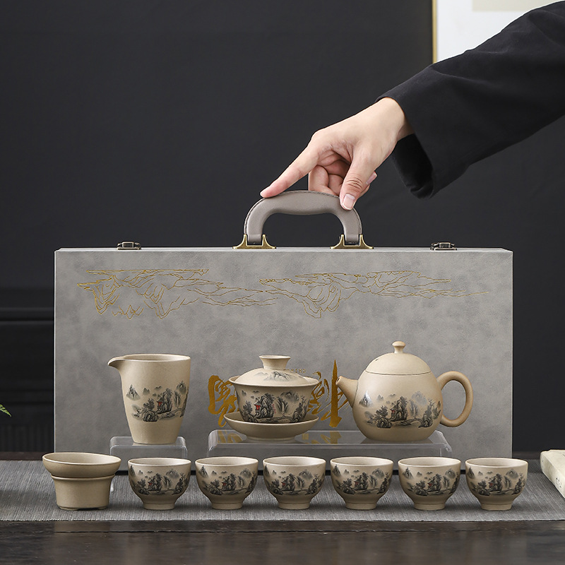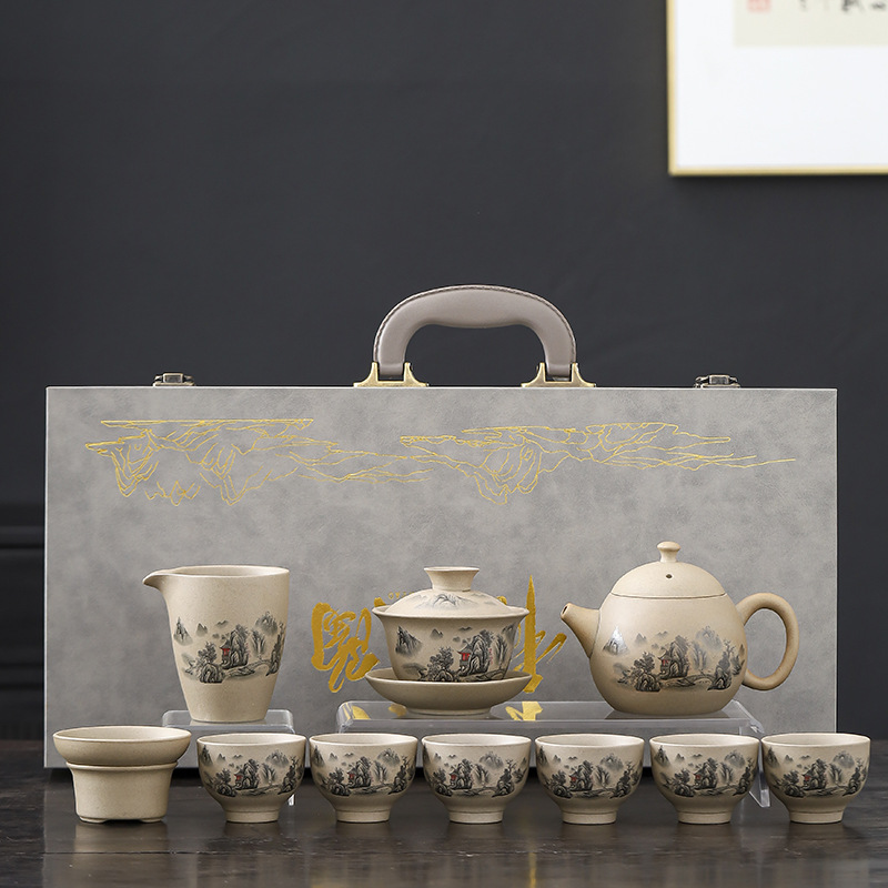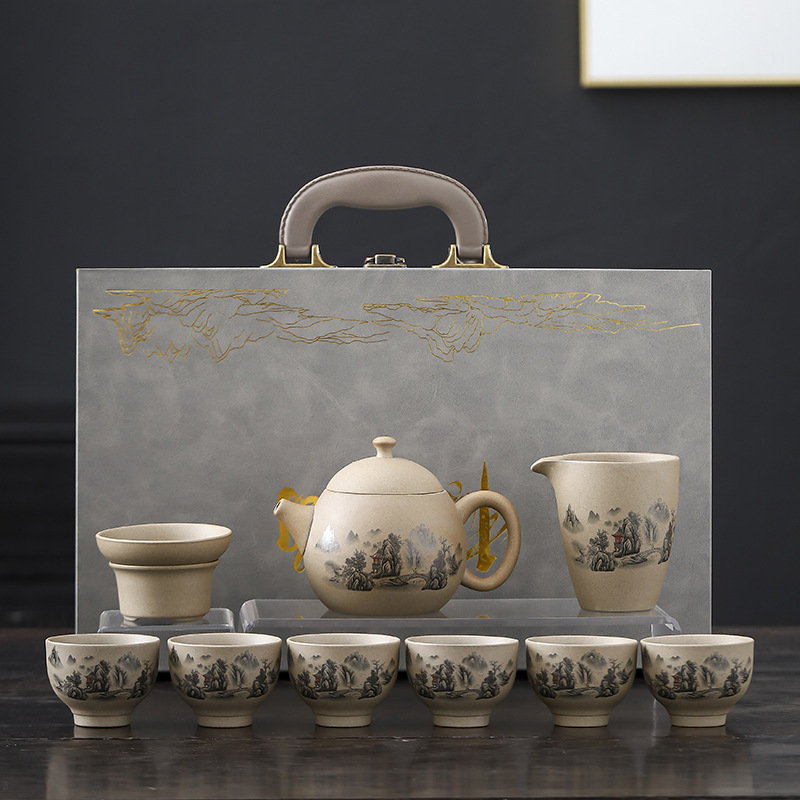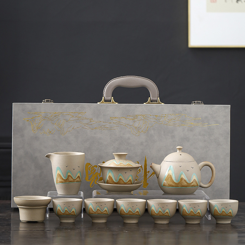 Kung Fu tea set complete set of coarse pottery Chinese high-end ceramic dragon egg teapot business event gift customization LOGO