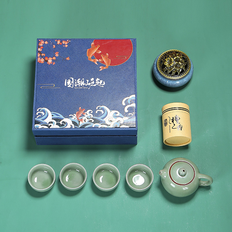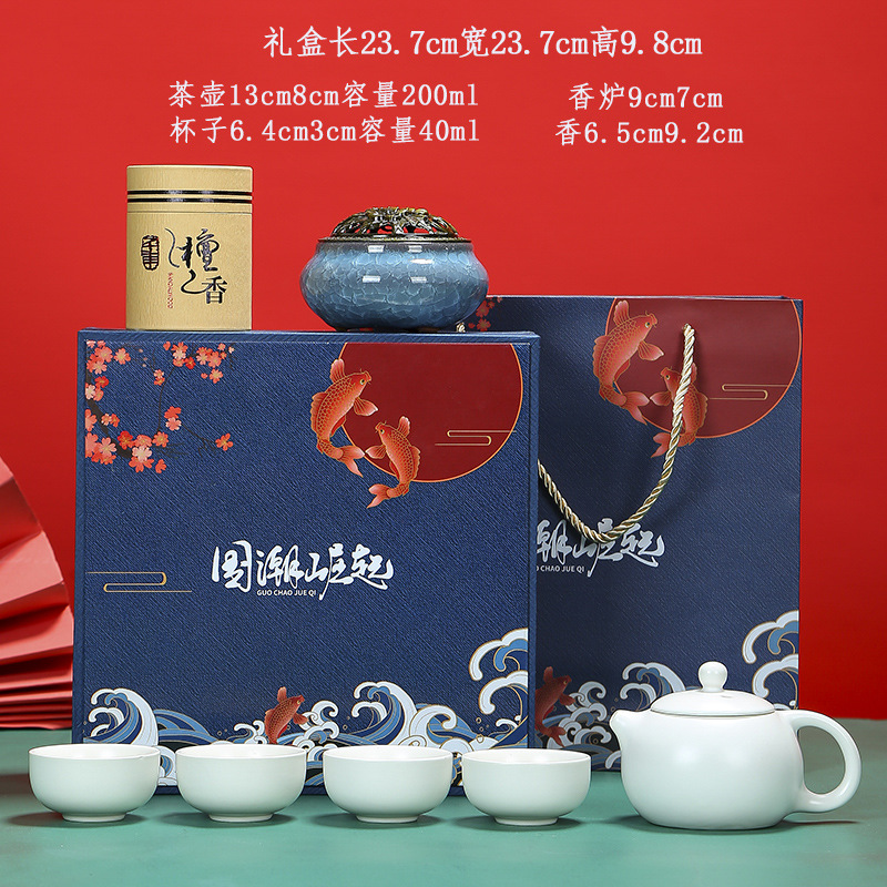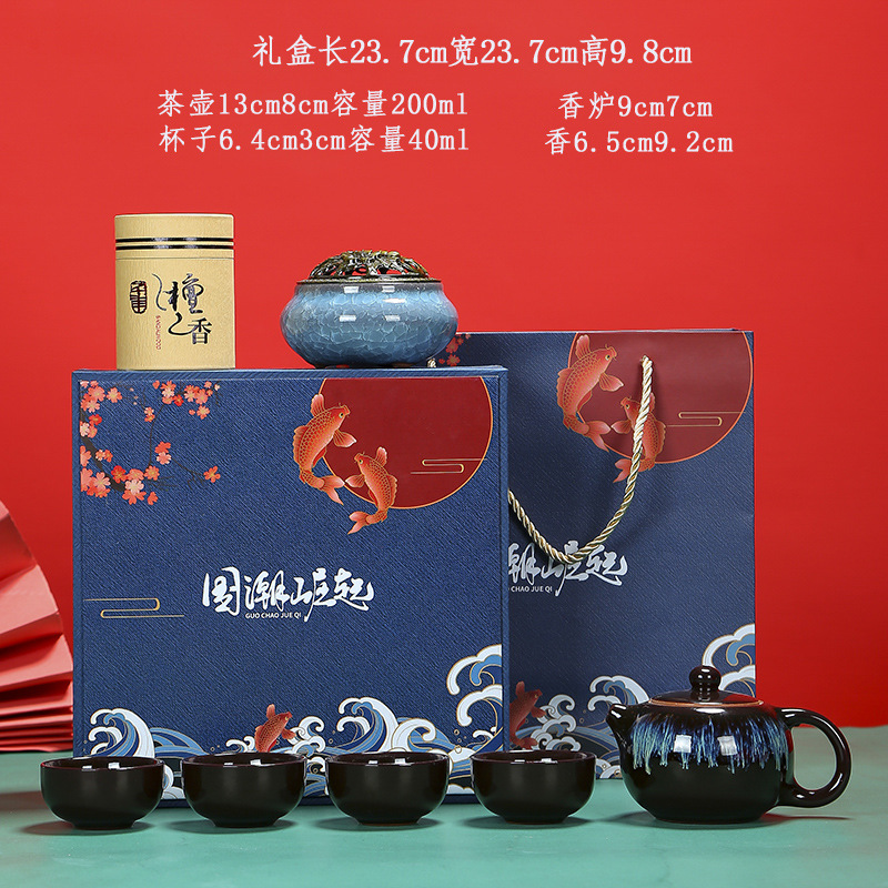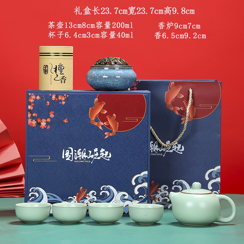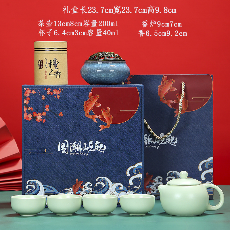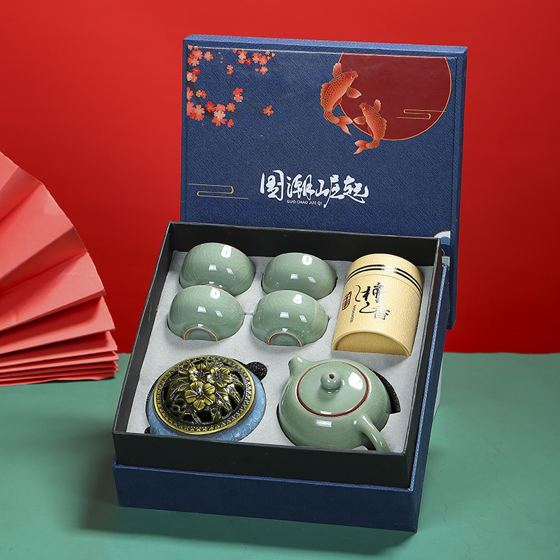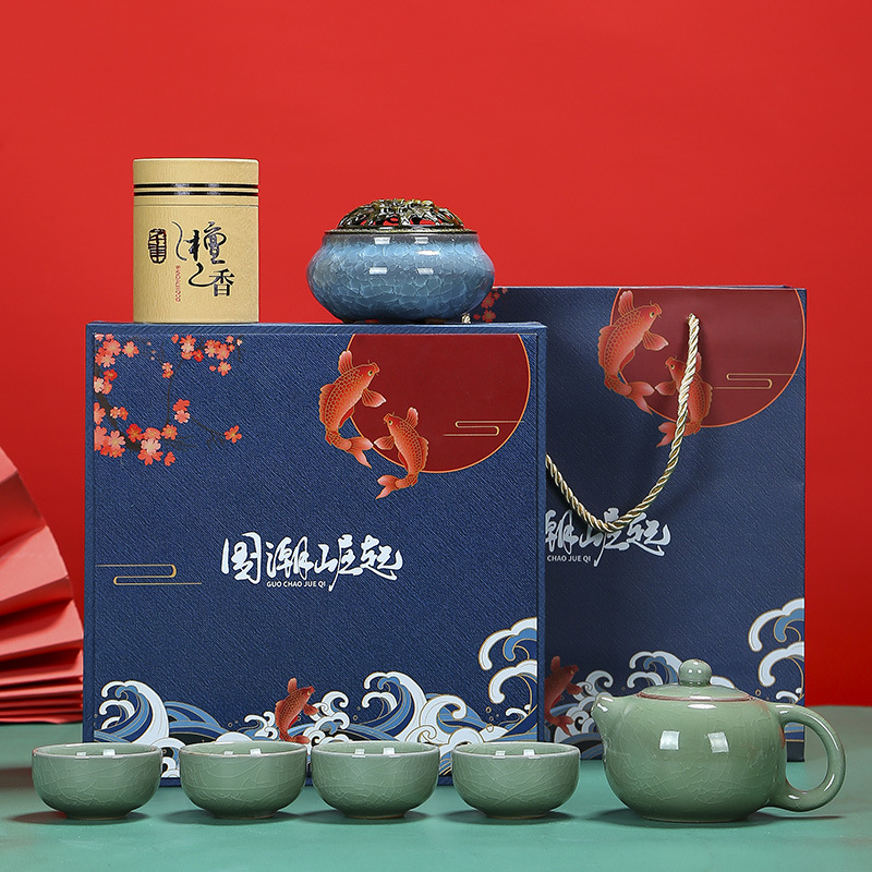 National trend tea set, one pot, four cups, ceramic Ge kiln, Xishi Kung Fu teapot, tea cup, gift box, accompanying gift