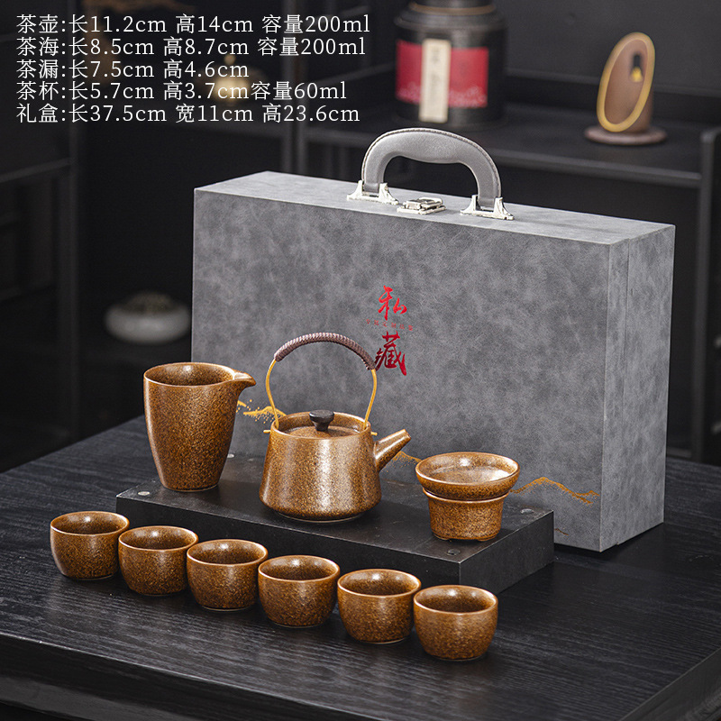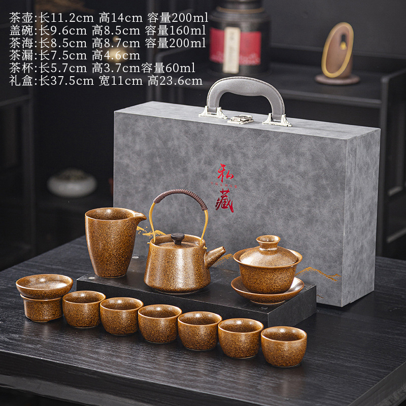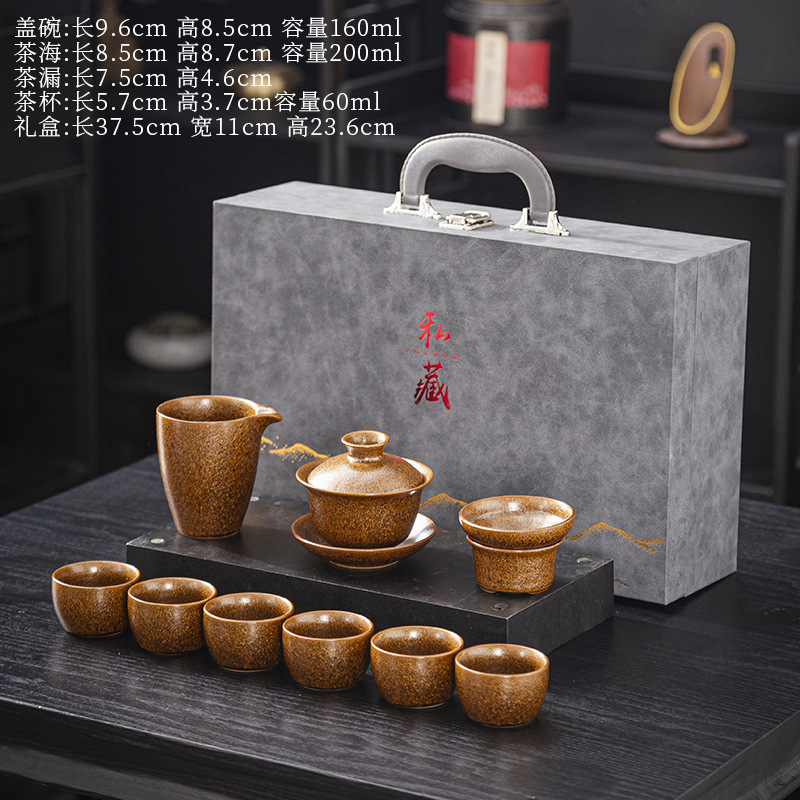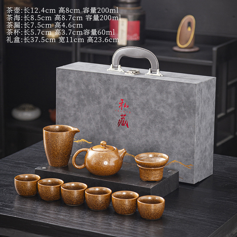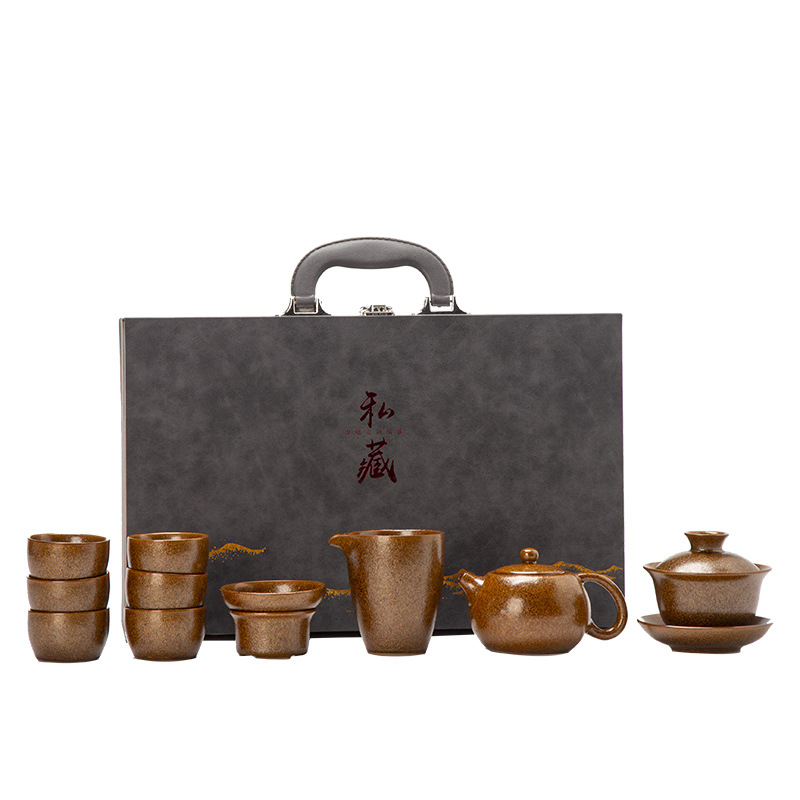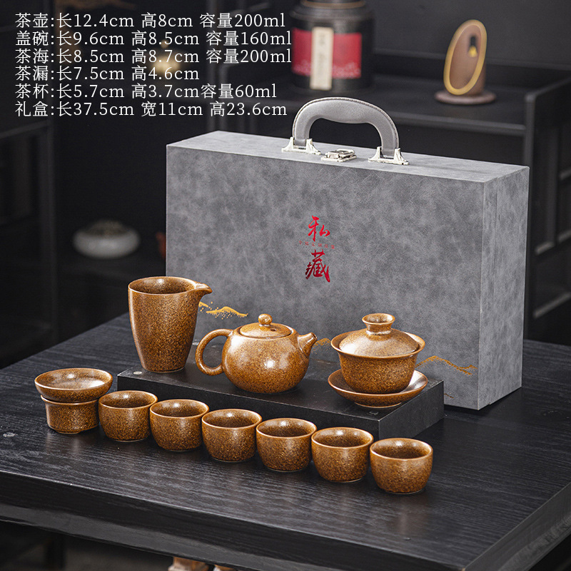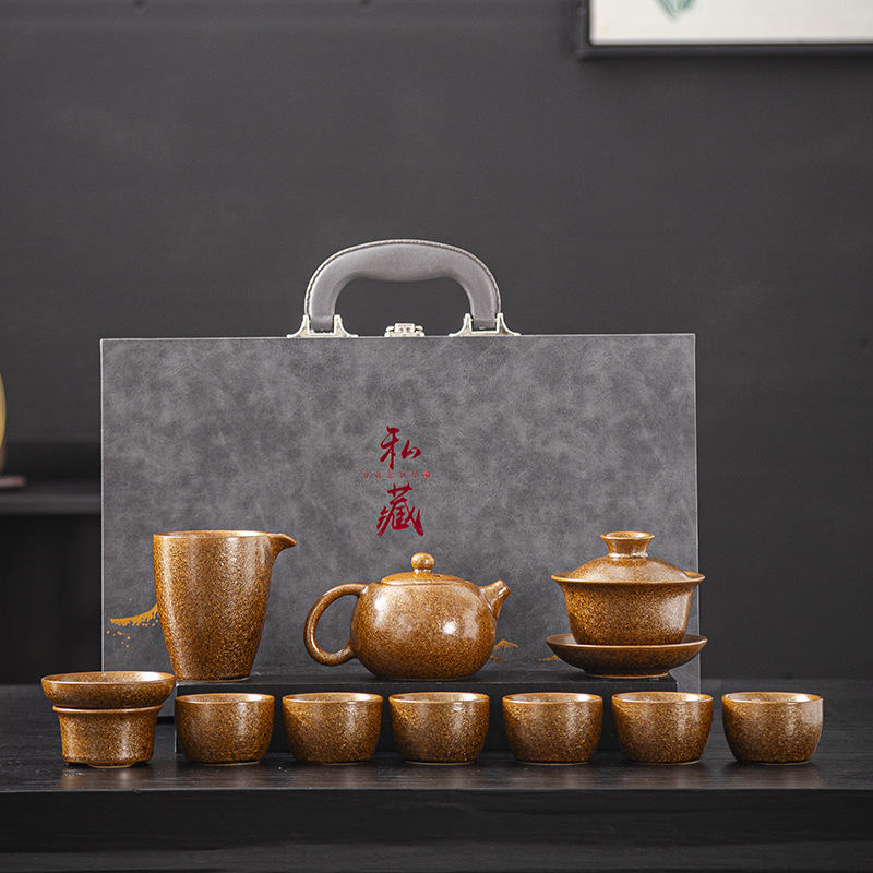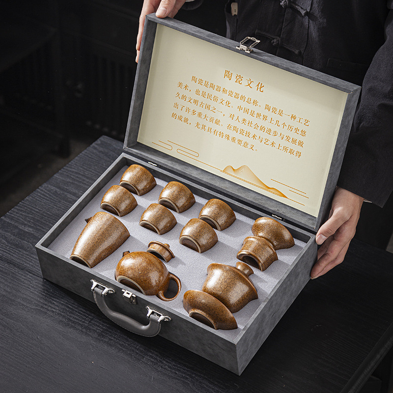 Kiln transformation antique tea set gift box for elders, light luxury and high-end set of opening and moving business event gifts