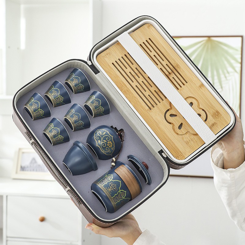 Popular ancient travel tea set size set portable kung fu tea set Kuaike Cup business gift company logo
