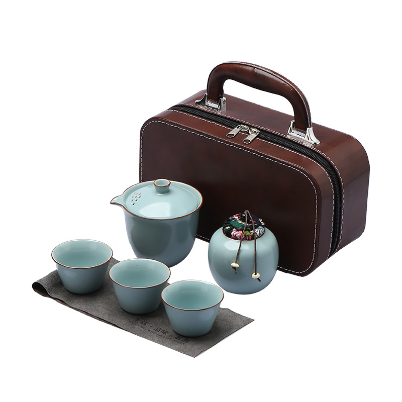 Travel tea set Portable outdoor ceramic Rukiln Kuaike cup set Business event accompanying gift customization LOGO